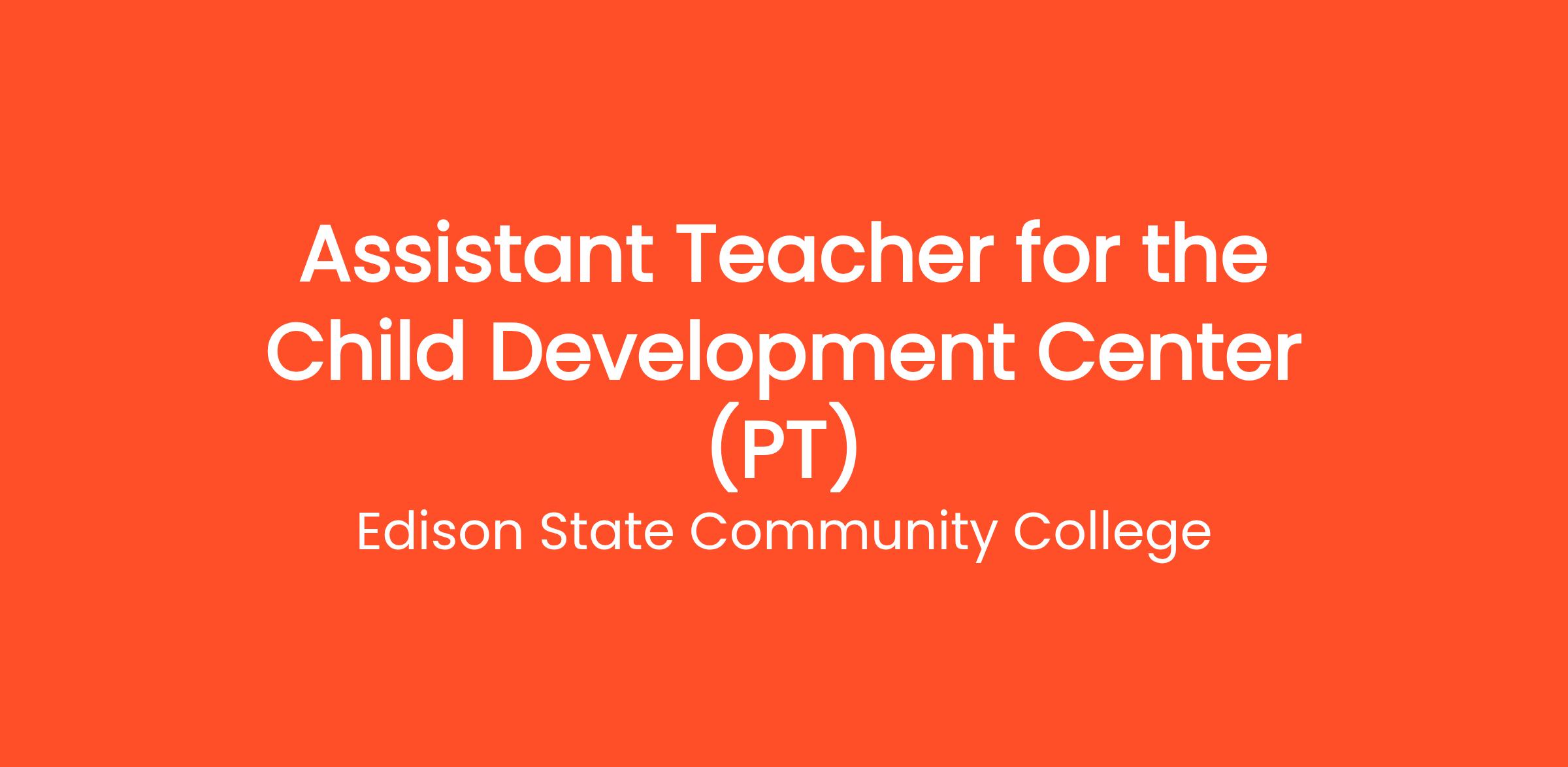 Edison State Community College invites qualified candidates to apply for the part-time position of Assistant Teacher for the Child Development Center (PT). This is a 30 hour/per week position, (1290 hours per year) working 10 months out of the year (August through May). The responsibilities of the part-time assistant teacher include implementing and modeling learning experiences that foster social, emotional, cognitive, physical and creative growth for the children in the Child Development Center while implementing a curriculum that is based upon the Ohio Early Learning and Development Standards. The learning experiences must be suitable for the ages and developmental stages of the children who are enrolled during the hours the part-time assistant teacher is in charge. The part-time assistant teacher is also responsible for maintaining the Center so it remains in compliance with the Ohio Department of Job and Family Services licensing requirements, the NAEYC Accreditation Standards, and Ohio's Step-Up to Quality Standards. He/she will also supervise student workers.