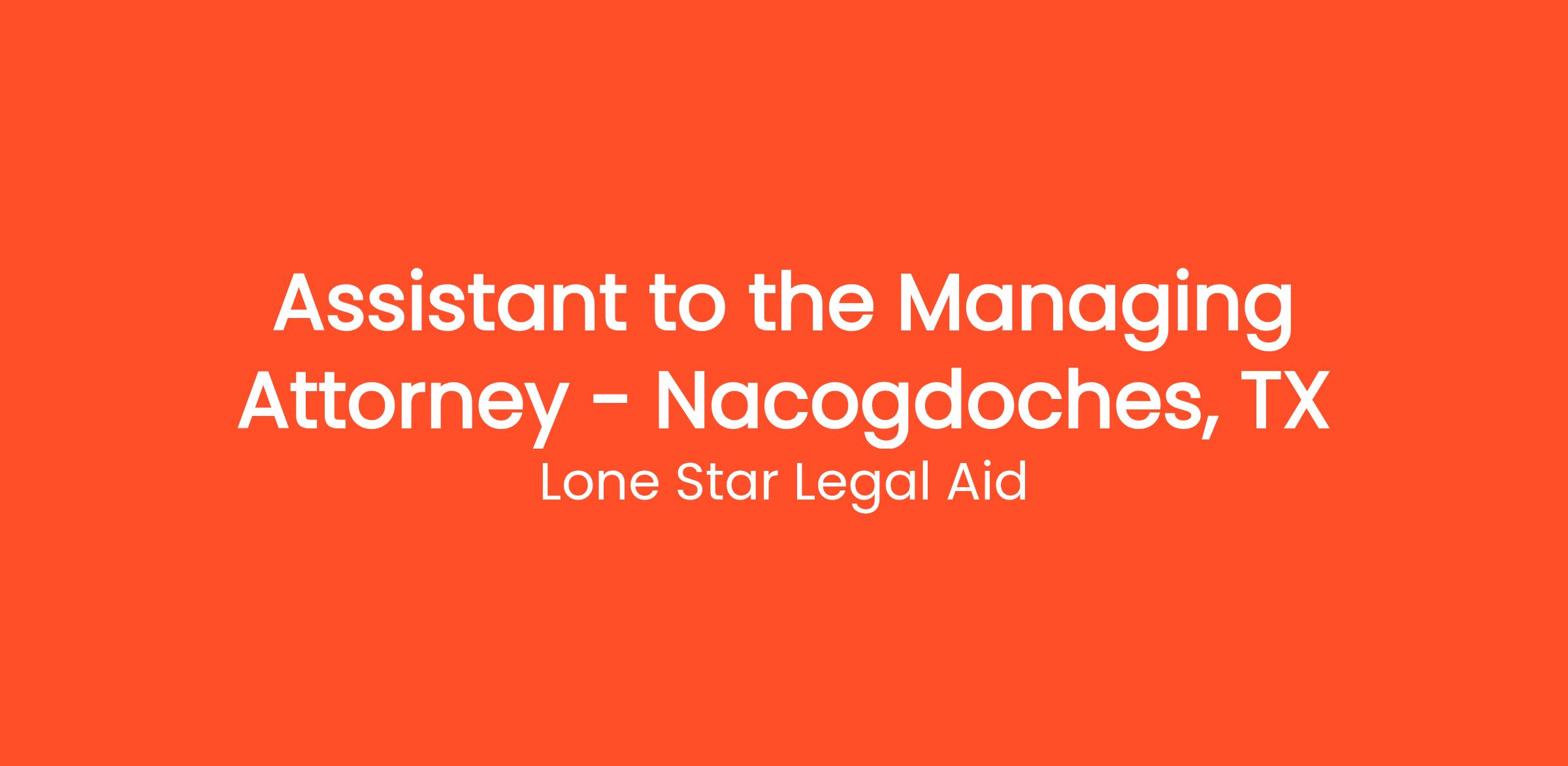 Lone Star Legal Aid (LSLA) seeks one Assistant to the Managing Attorney (NAC JP# 012-2025) for its Nacogdoches Branch Office.
