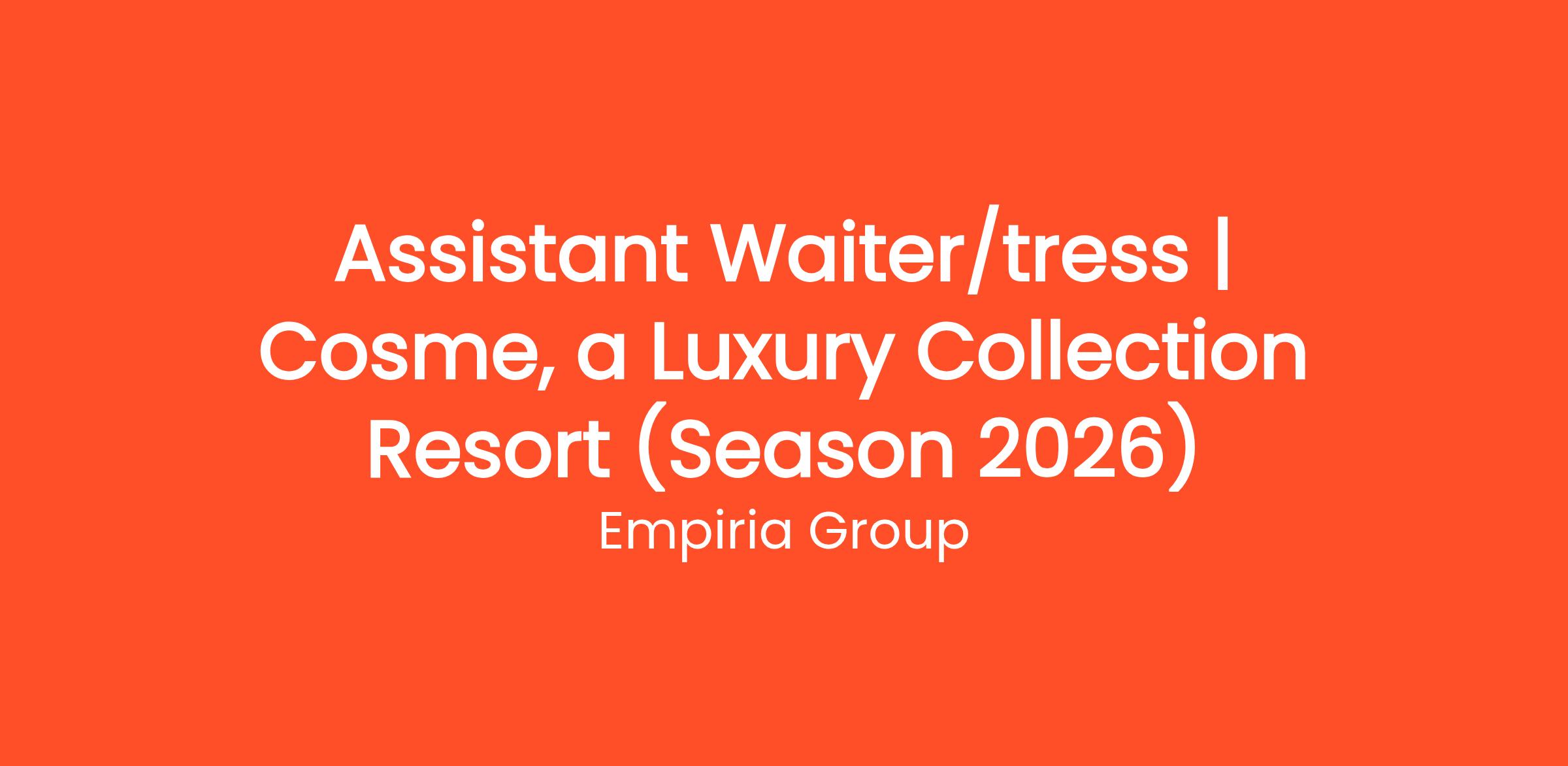 The Assistant Waiter supports the service team in delivering a seamless, elegant, and personalized dining experience. The role involves ensuring impeccable table setup, maintaining well-prepared service areas, and responding promptly to guest needs, consistently contributing to the exceptional standards of service expected in a luxury hospitality environment.