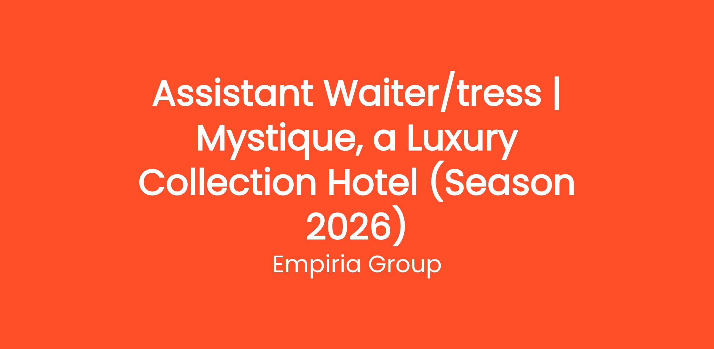 Assistant Waiter/tress | Mystique, a Luxury Collection Hotel (Season 2026)