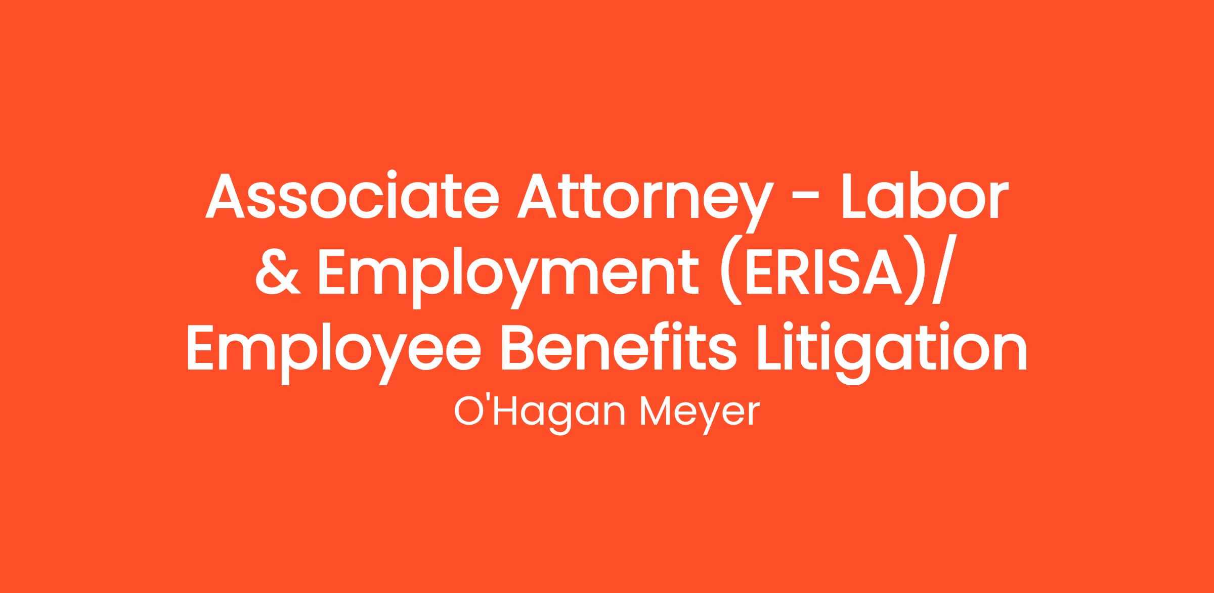 O’Hagan Meyer is seeking Litigation Attorney with at 2-6 years of ERISA and Employee Benefits litigation experience to join its Atlanta office. This is an ideal opportunity for an attorney looking to handle a wide-range of civil litigation matters involving cutting-edge topics and sophisticated, interesting clients.