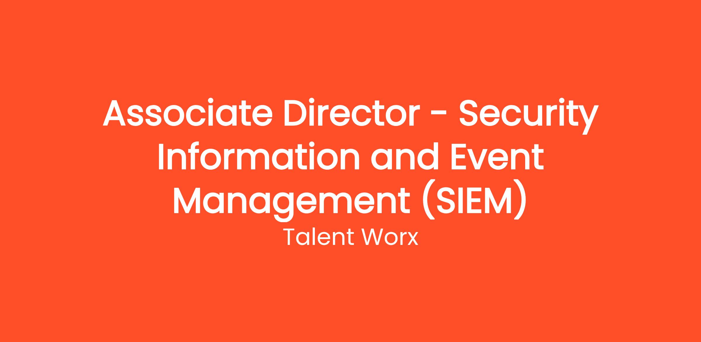 Talent Worx is seeking an experienced Associate Director of Security Information and Event Management (SIEM) to join our team. In this role, you will be responsible for managing and enhancing our SIEM solutions to ensure the security of our systems and data infrastructure. You will lead initiatives to develop and implement analytics strategies that optimize the detection of security incidents and enhance our incident response capabilities.