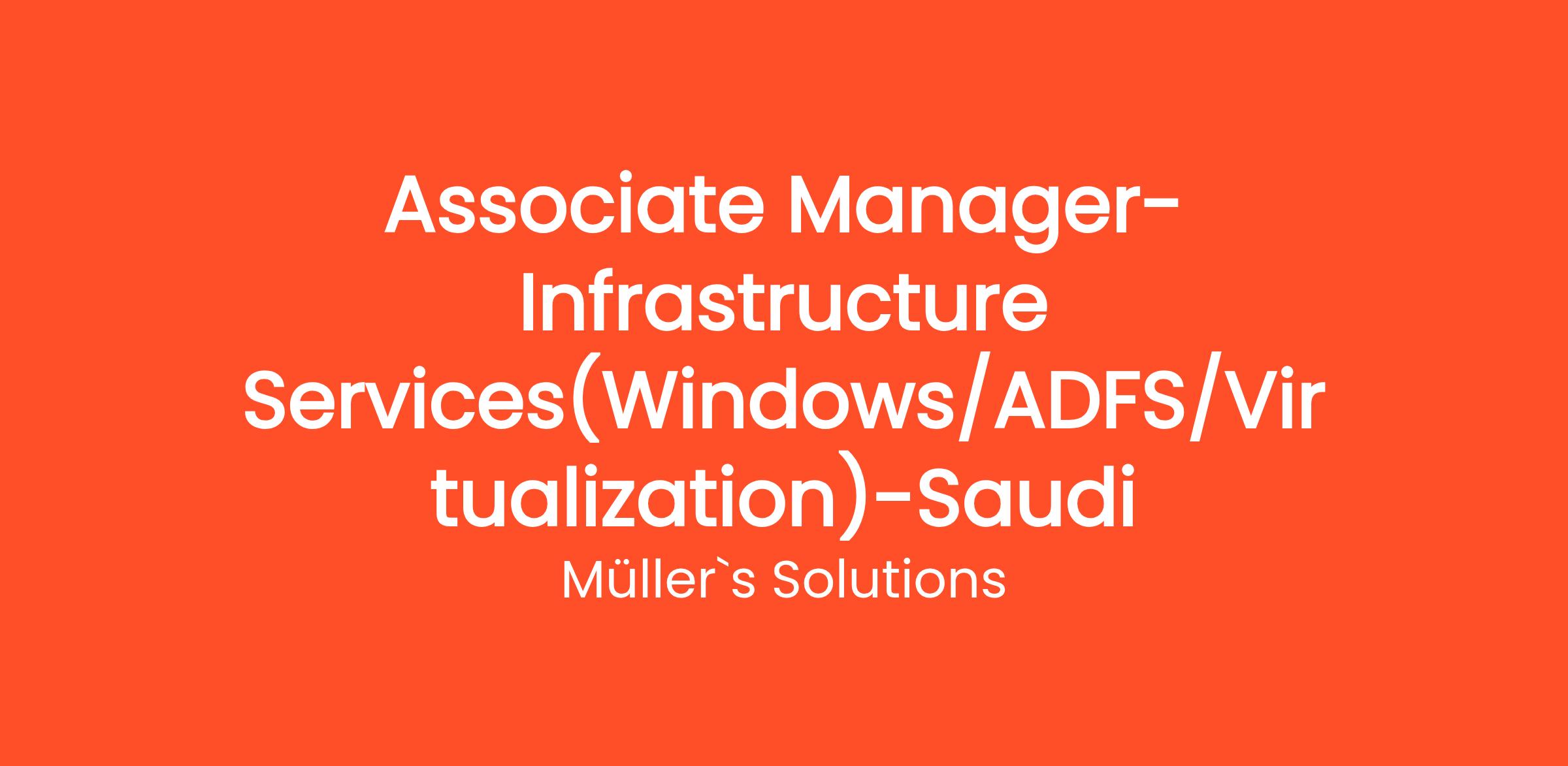 Müller's Solutions is seeking an experienced Associate Manager for our Infrastructure Services team, with a strong focus on Windows, ADFS, and Virtualization. In this pivotal role, you will oversee the operations, implementation, and support of our clients' infrastructure services, ensuring scalability, reliability, and performance. Your leadership will guide a team of engineers and support staff as they deliver exceptional service and solutions.