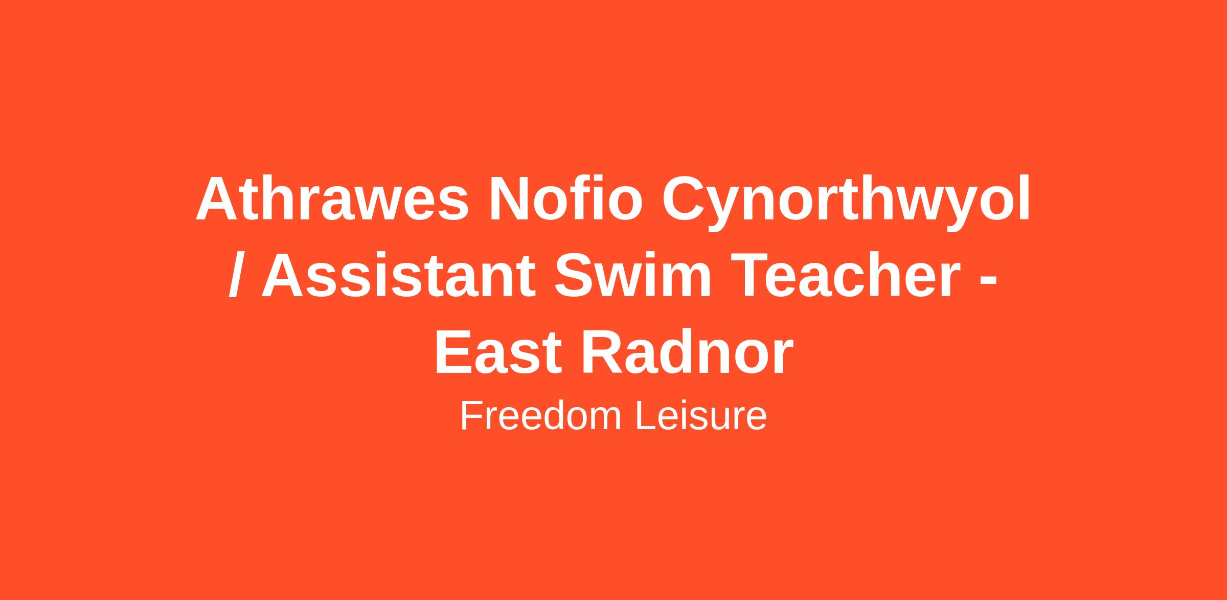 O fewn rôl Athrawes Nofio Cynorthwyol, fe fyddwch yn cyflwyno gwersi nofio i gwsmeriaid o bob oedran a gallu gan sicrhau eu bod yn cael eu cefnogi ac yn cyflawni eu nodau.