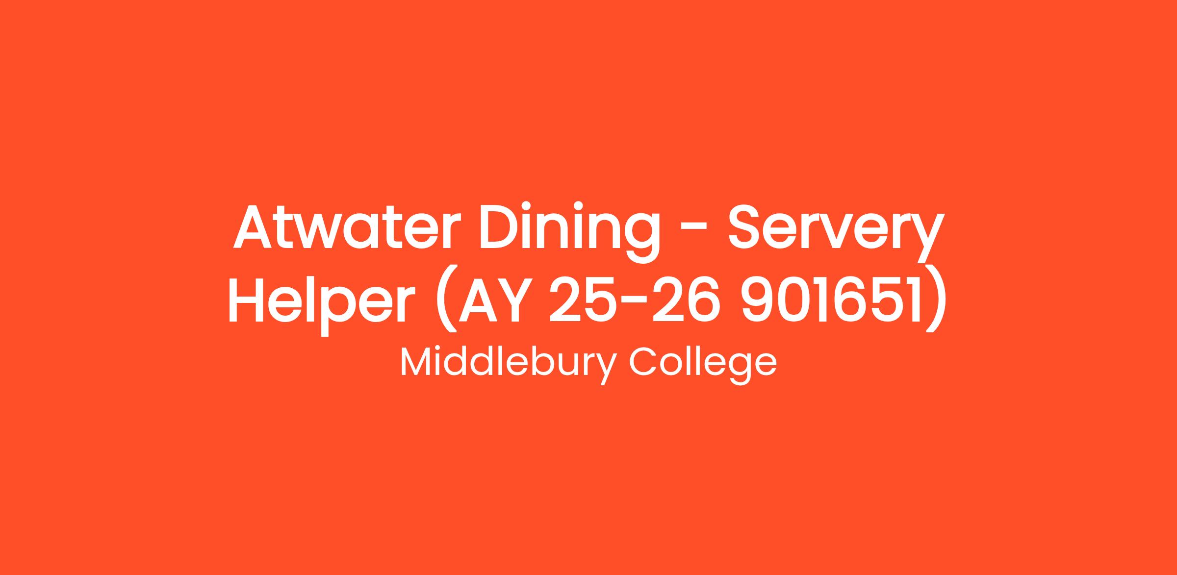 The Atwater Servery helper is a vital part of the Dining Services team and assists in ensuring an excellent student dining hall experience.
