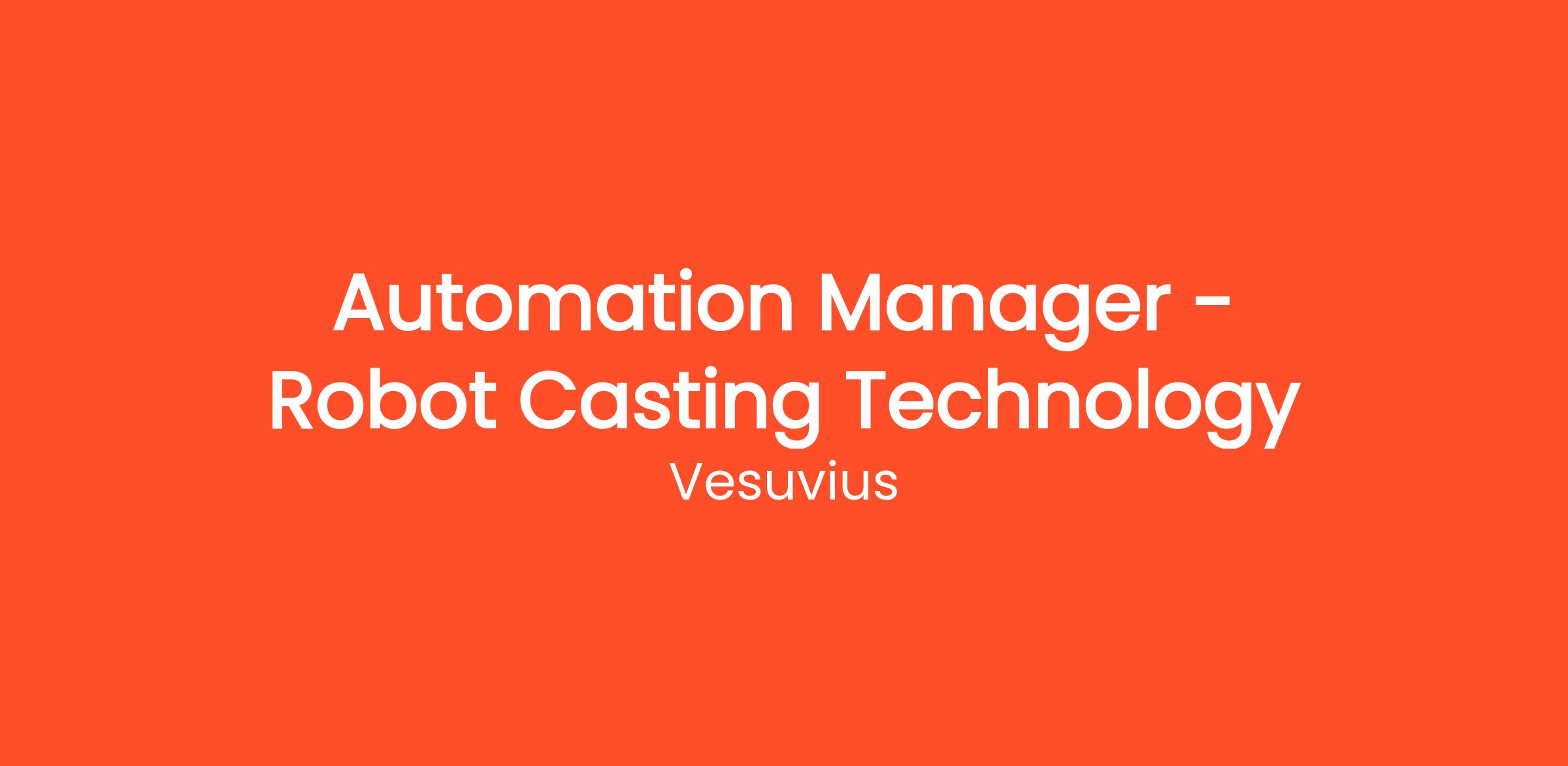 Join Vesuvius as the Robot Casting Technology Automation Manager and lead the innovation in automated solutions for the casting industry!