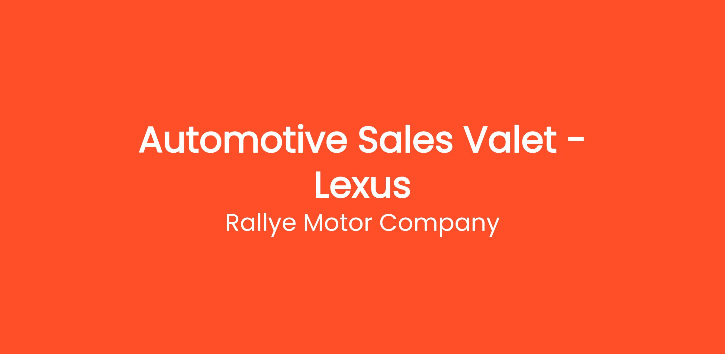 The Rallye Motor Company has immediate opportunities for a Sales Valet at Rallye Lexus! Seeking a reliable, energetic, motivated individual who enjoys working in a fast paced environment. Must have a clean New York driver's license.