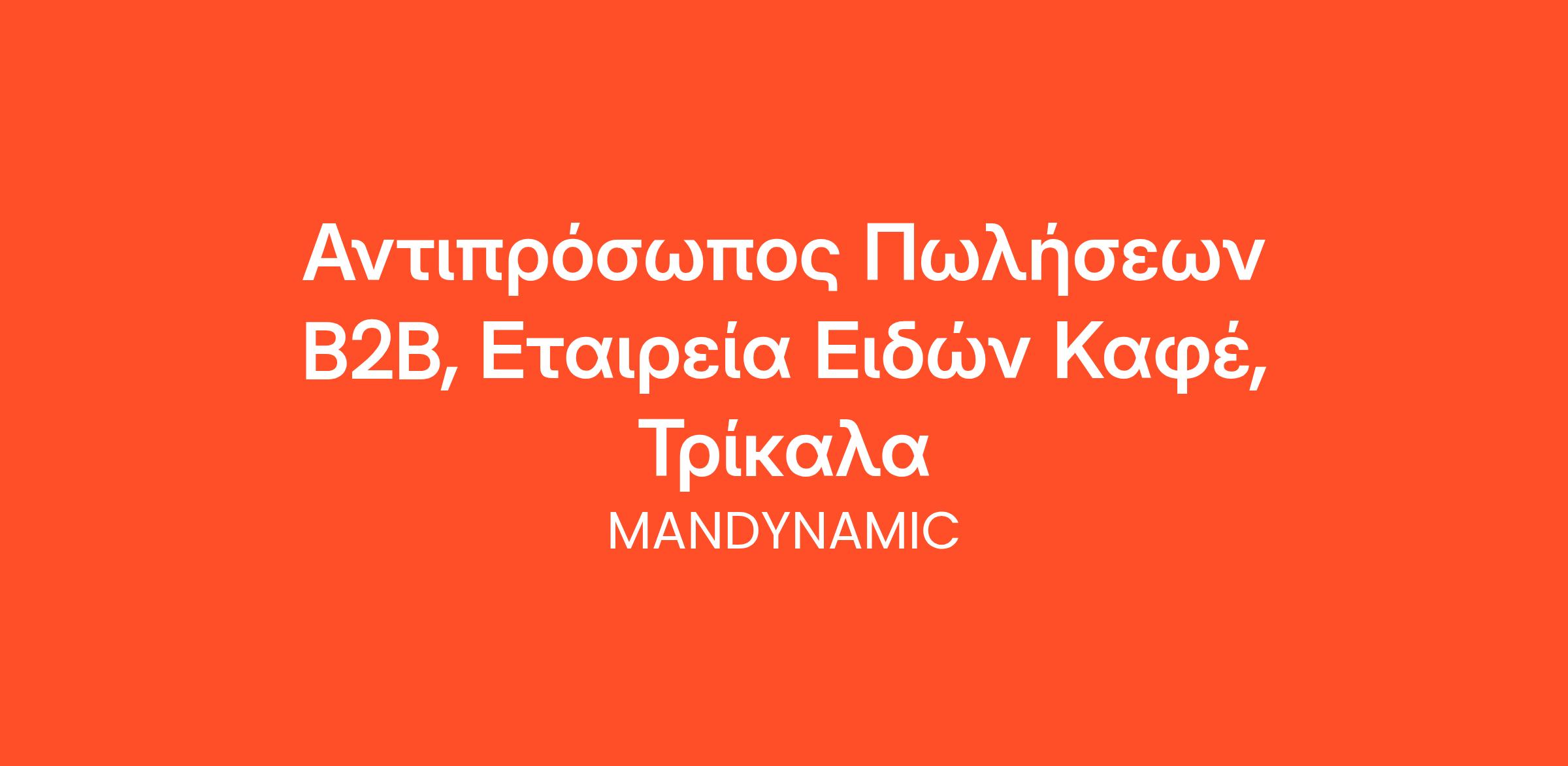 Η MANDYNAMIC αναζητά Αντιπρόσωπο Πωλήσεων B2B εκ μέρους Εταιρείας Ειδών Καφέ στα Τρίκαλα.