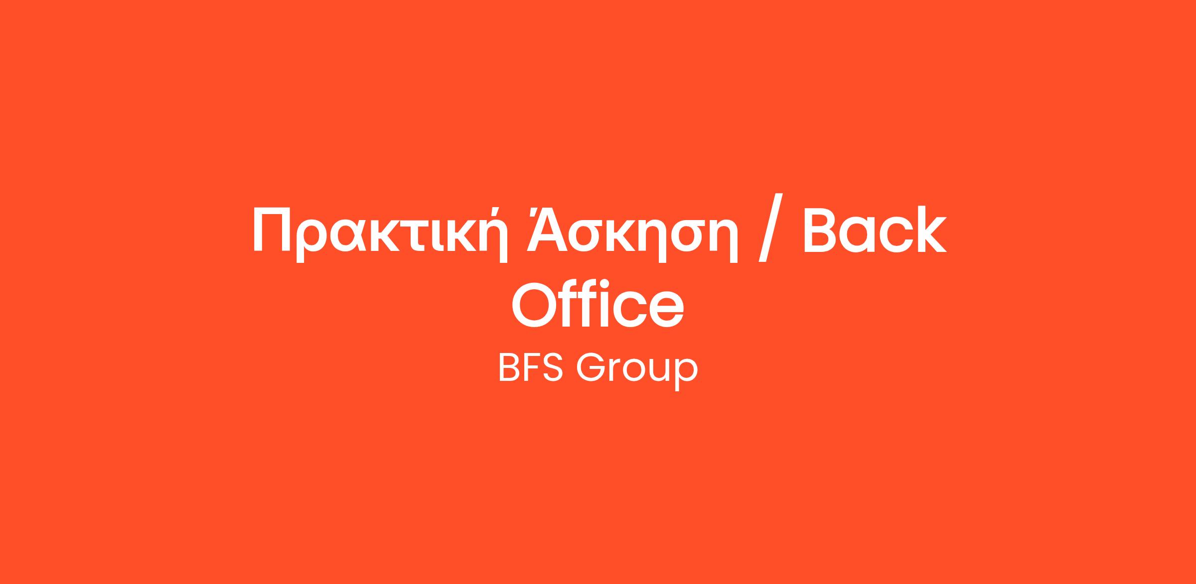 H εταιρία BFS GROUP, αναζητά τελειόφοιτους AΕΙ / ΤΕΙ / ΙΕΚ, για να πραγματοποιήσουν την πρακτική τους άσκηση στο τμήμα του back office της εταιρείας μας , σε συνεργασία με το εκπαιδευτικό ίδρυμα φοίτησης από τμήματα: