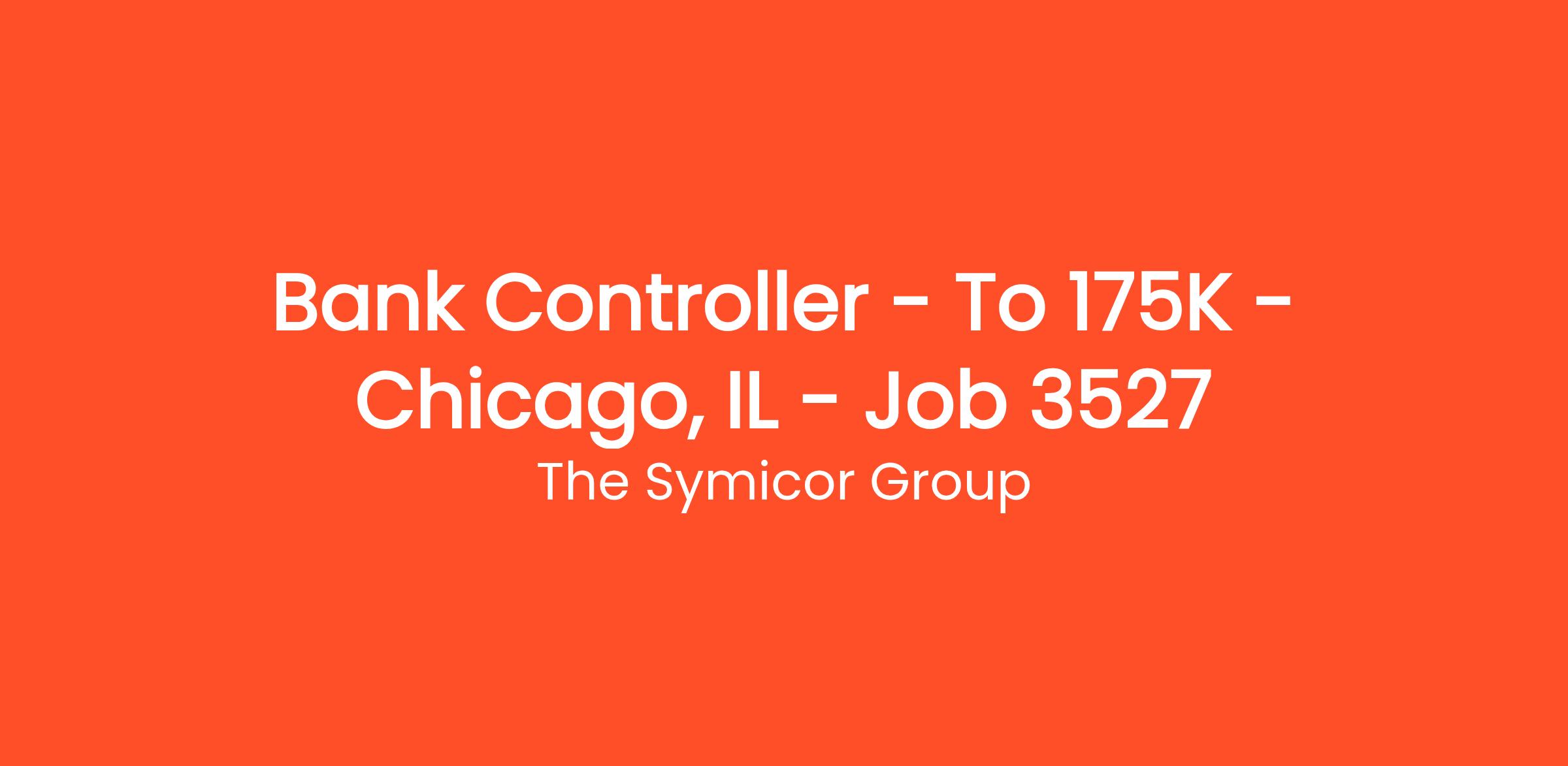 Bank Controller – To $175K – Chicago, IL – Job # 3527