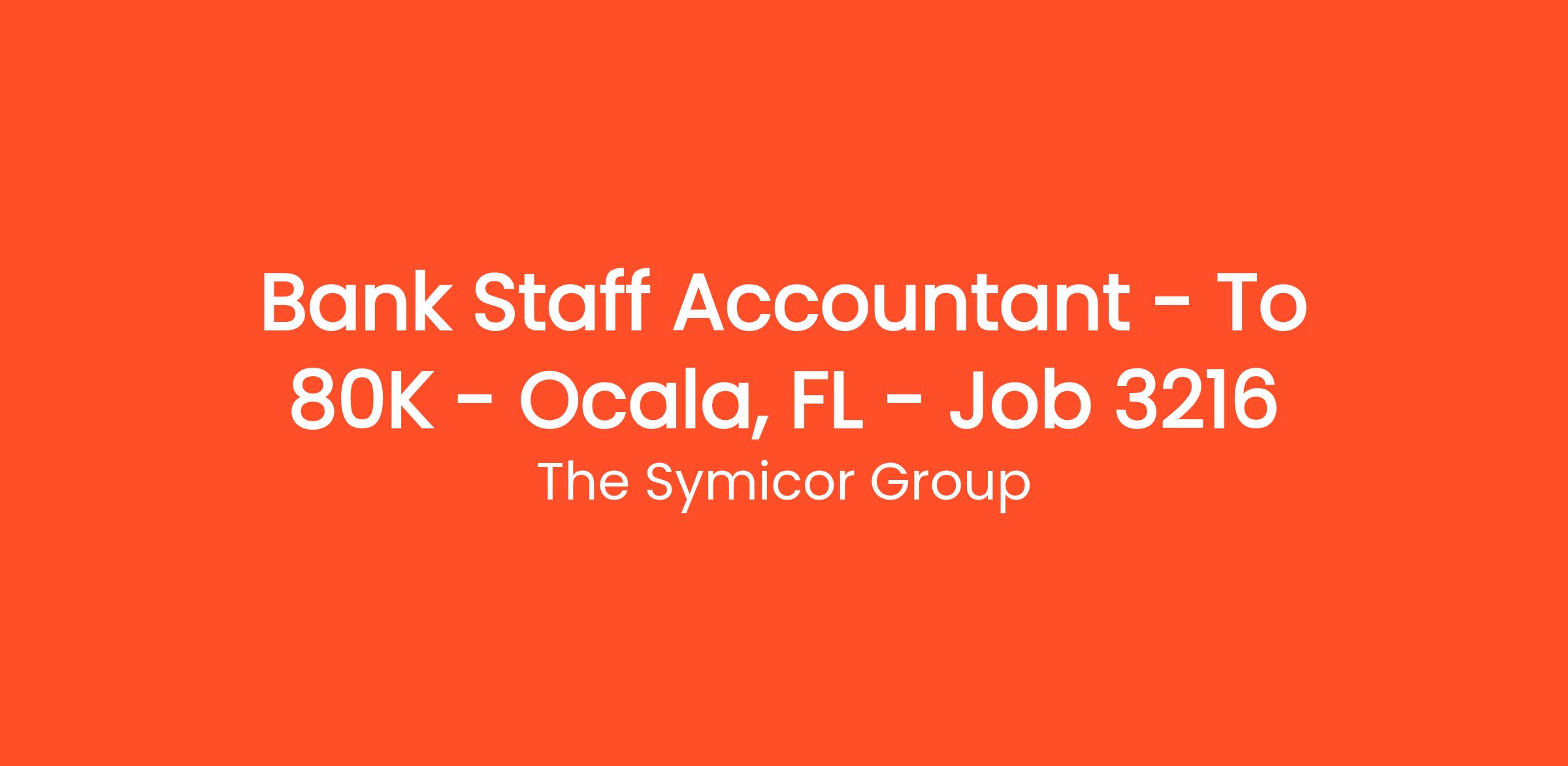 Our community bank client is seeking to fill a Bank Staff Accountant role in the Ocala, FL market. The successful candidate will assist in all aspects of the Accounting and Finance departmental functions.