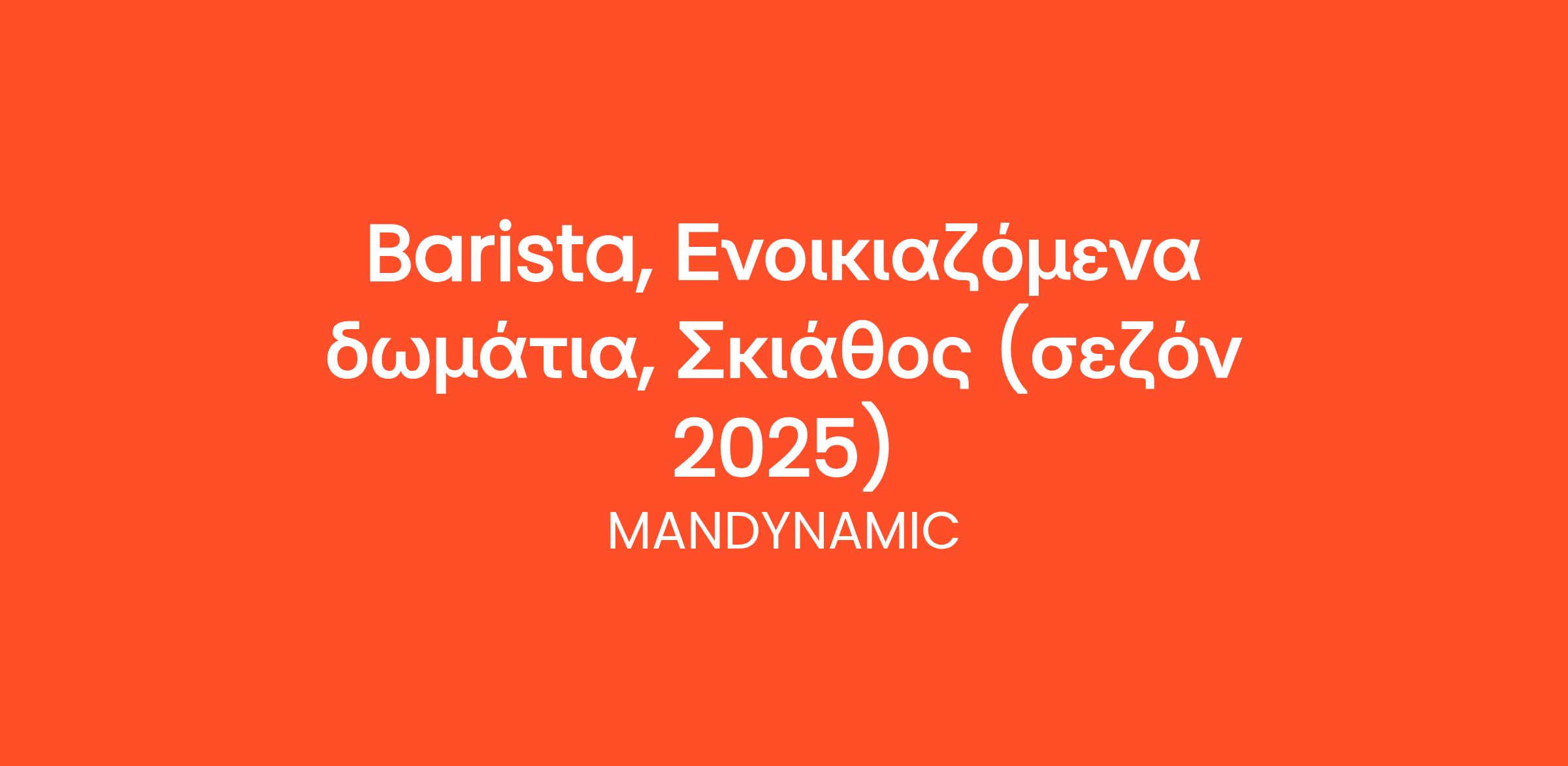 Η MANDYNAMIC αναζητά Barista εκ μέρους Pool Bar ενοικιαζόμενων δωματίων στη Σκιάθο, για τη θερινή σεζόν του 2025.