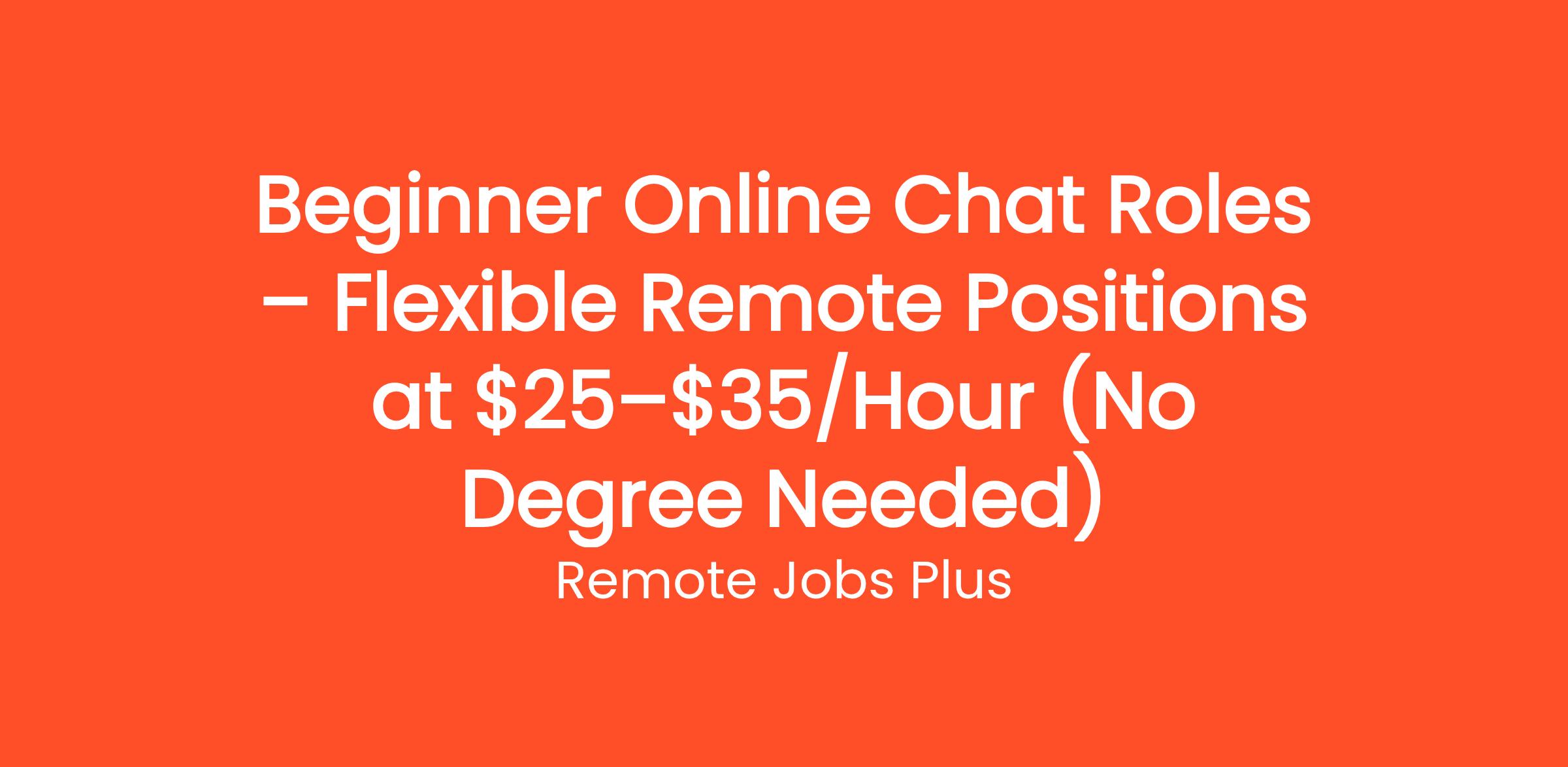 Beginner Online Chat Roles – Flexible Remote Positions at $25–$35/Hour (No Degree Needed)