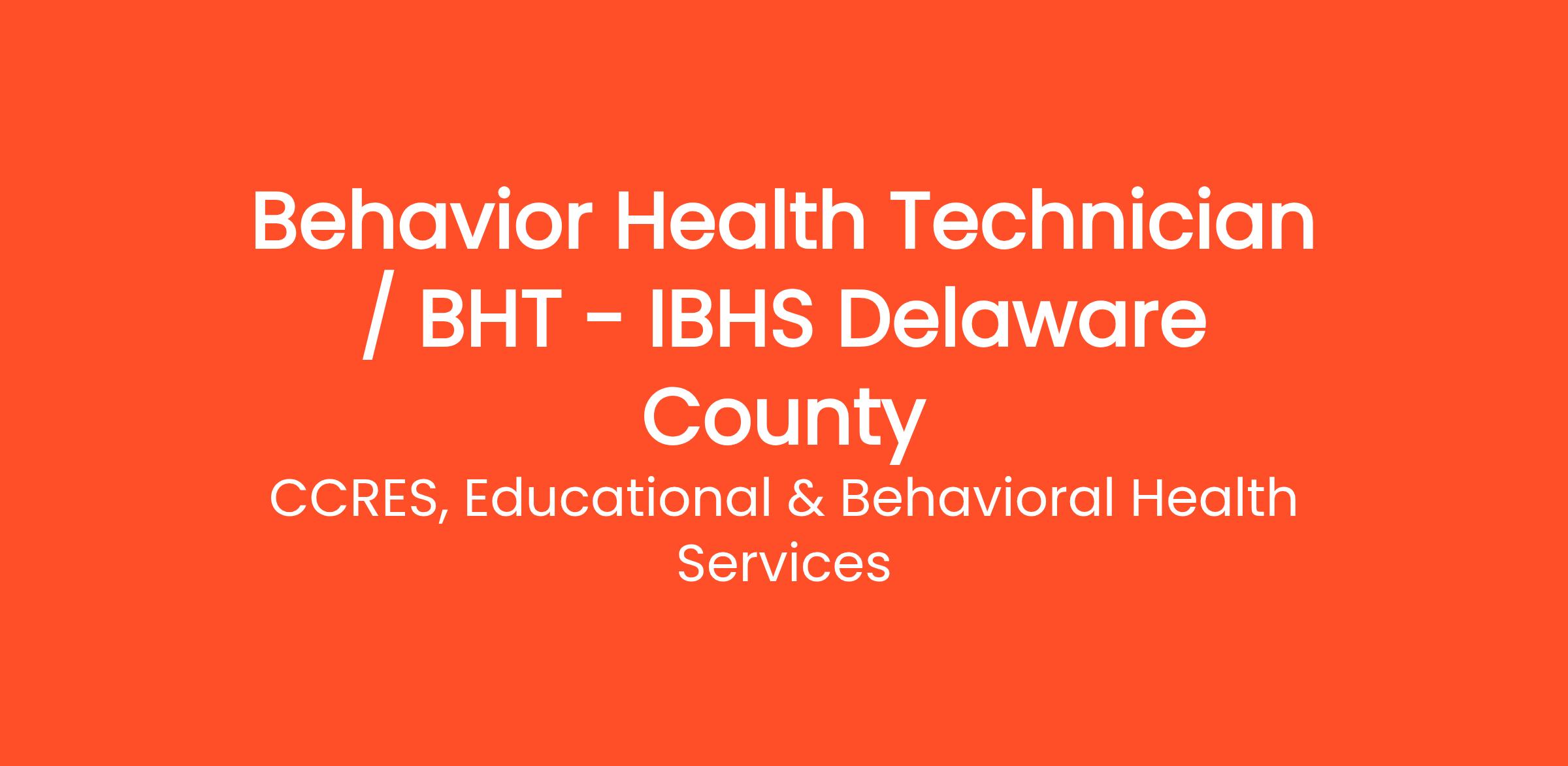 Make a difference every day by joining CCRES as a Behavior Health Technician (BHT) in Delaware County, PA