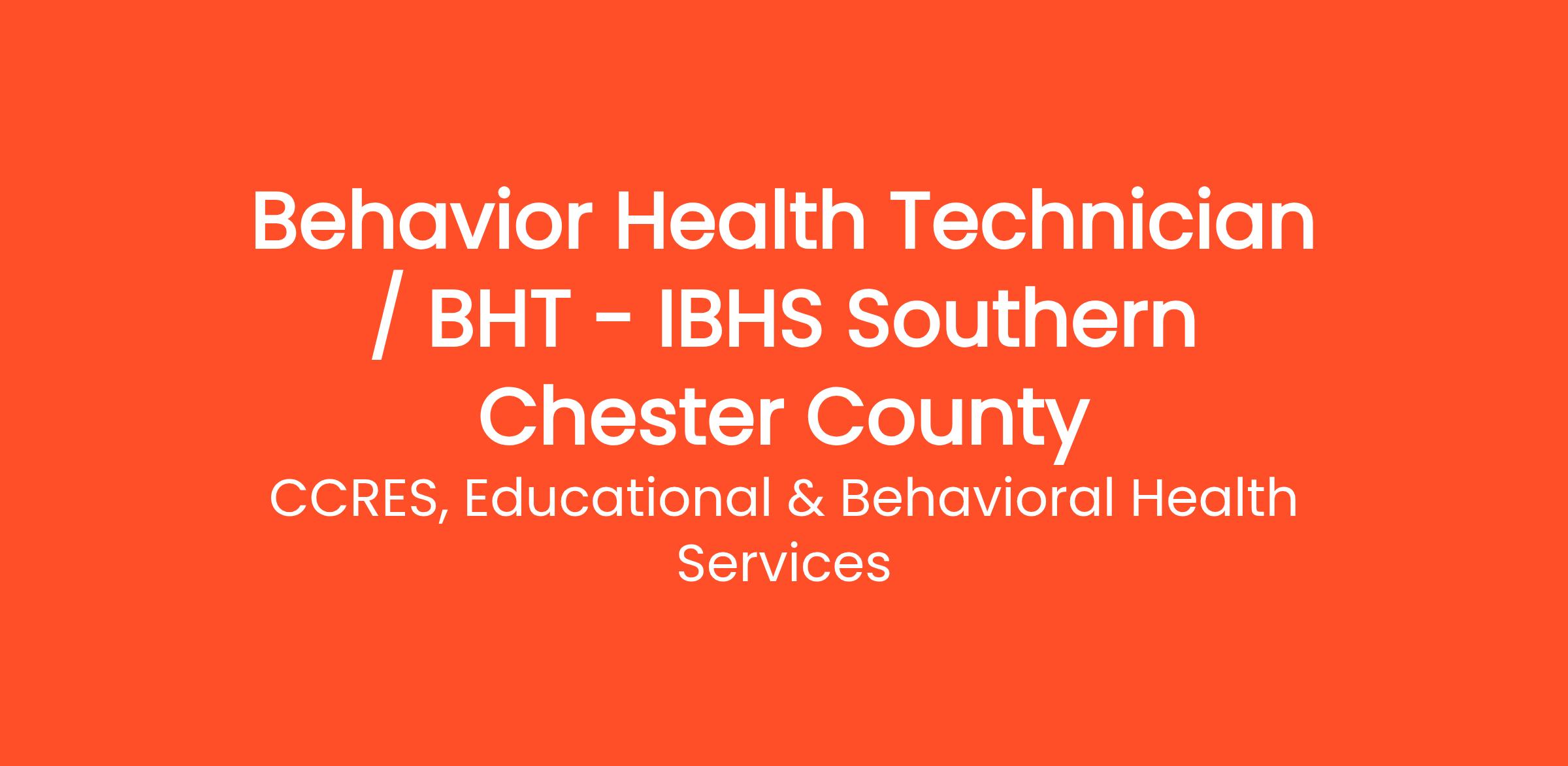- For a complete listing of CCRES Behavior Health Technician needs in Chester County, please click here: