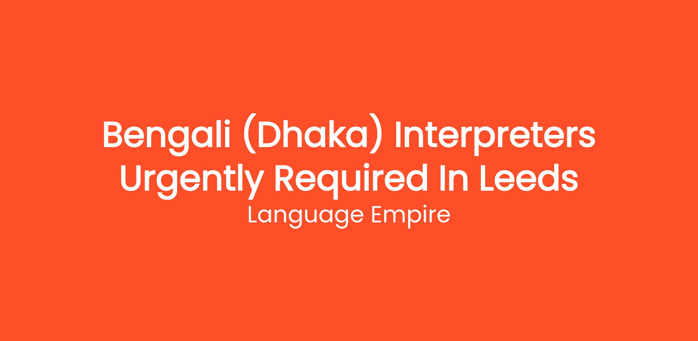 We are urgently recruiting for freelance Bengali (Dhaka) interpreters based in Leeds to work within various settings such as the NHS, Local Authorities, Police, Probation and other public and private organisations.