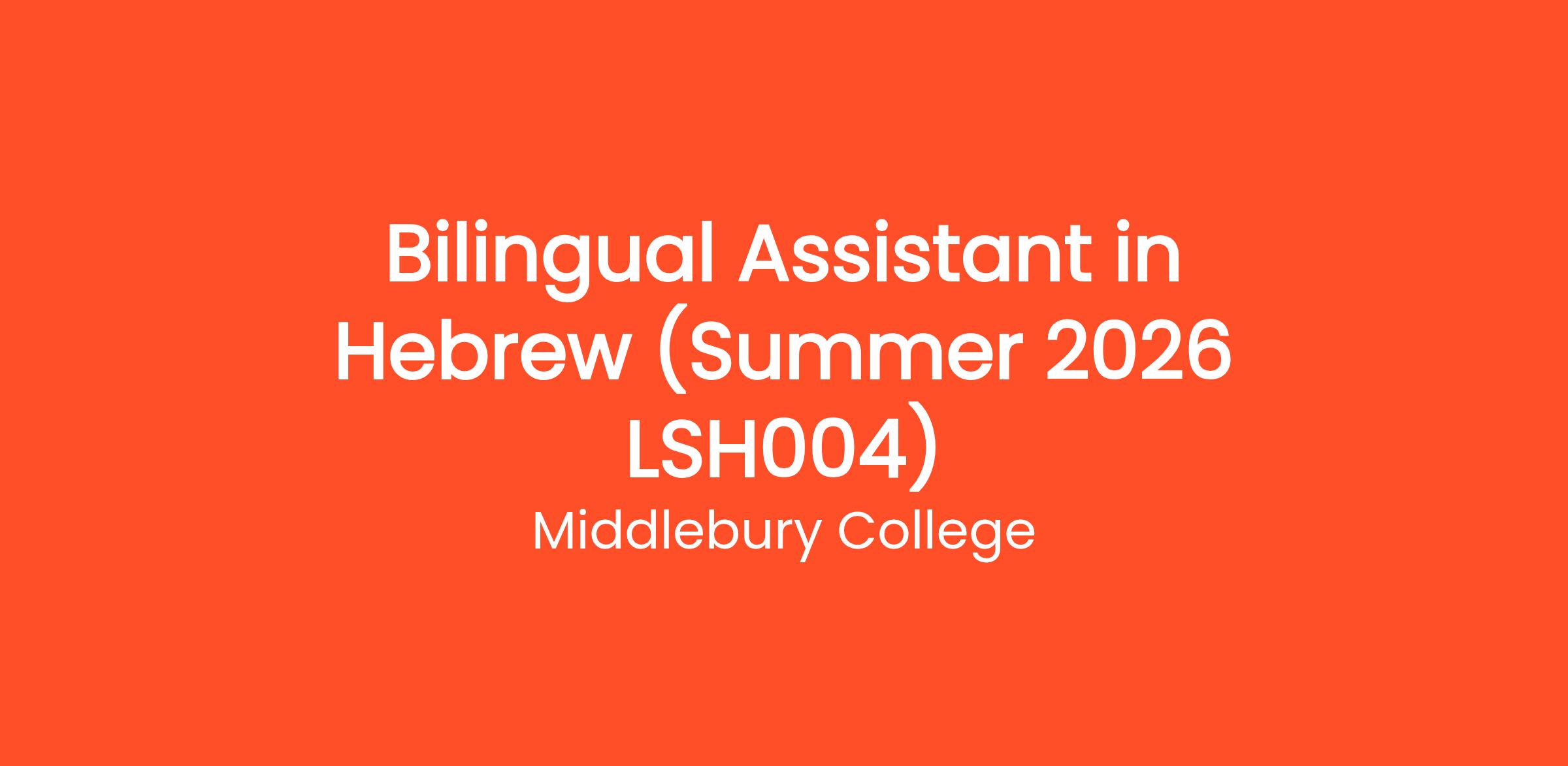 The School of Hebrew (SoH) bilingual posting is for the summer 2026 session, located on the campus of Middlebury College in Middlebury, Vermont.