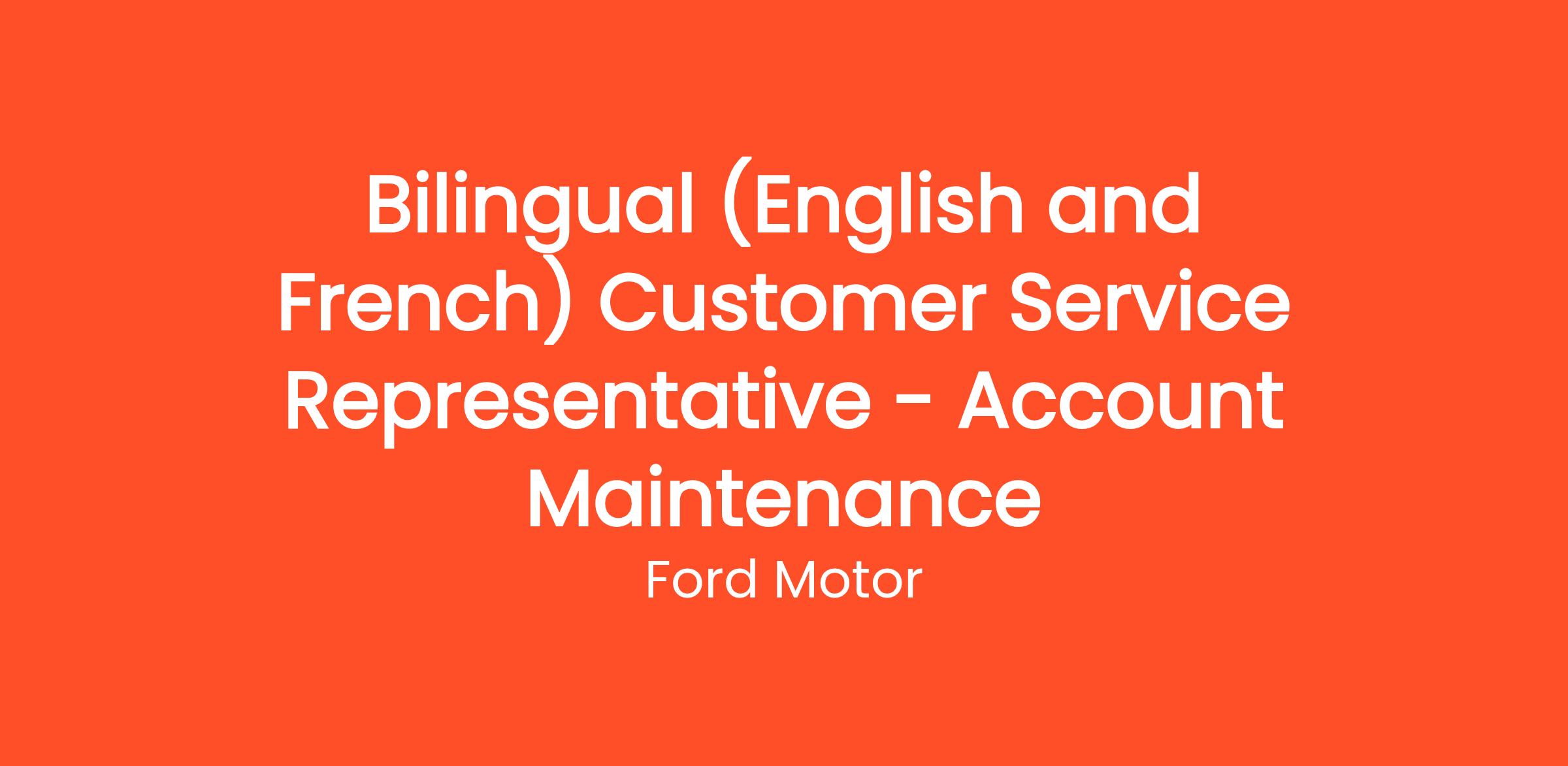 DescriptionWorking with a large team, as well as a broad network for Ford/Lincoln dealers across the country, the Bilingual (French/English) Account Maintenance Customer Service Representative will have the opportunity to advance Ford Credit Canada’s reputation as a customer-focused lender, providing personalized service and professional expertise.