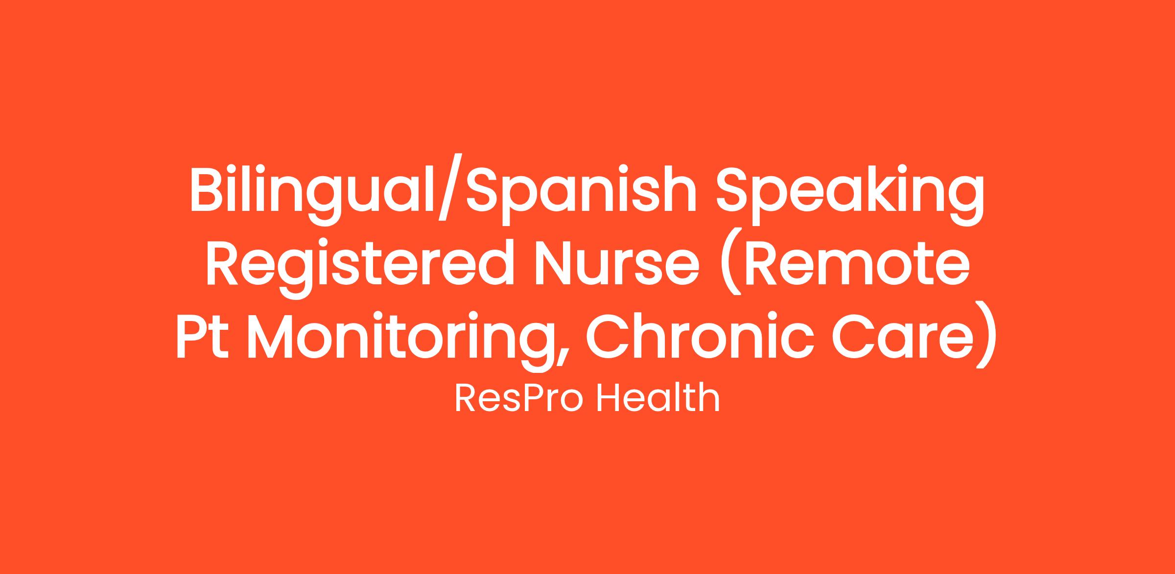 ResPro Health is dedicated to providing our partners in the respiratory space with the tools and resources needed to implement meaningful programs like remote patient monitoring and chronic care management in their pulmonary practices. With a focus on quality patient care and innovative solutions, ResPro Health equips specialists with dedicated staff to improve patient outcomes, promote patient engagement and support therapy compliance. Joining our team as a Registered Nurse, you will have the opportunity to connect with patients daily and support their respiratory needs from the comfort of your home. As a valued team member, you will collaborate with other experts in the respiratory space to improve patient outcomes and positively impact the future of specialty medicine.