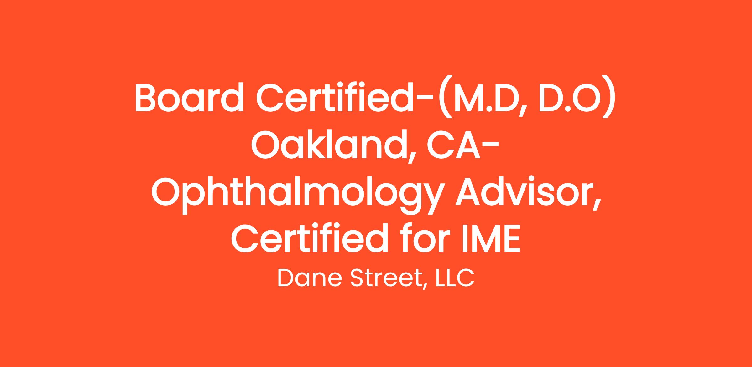 Board Certified-(M.D, D.O) Oakland, CA-Ophthalmology Advisor, Certified for IME