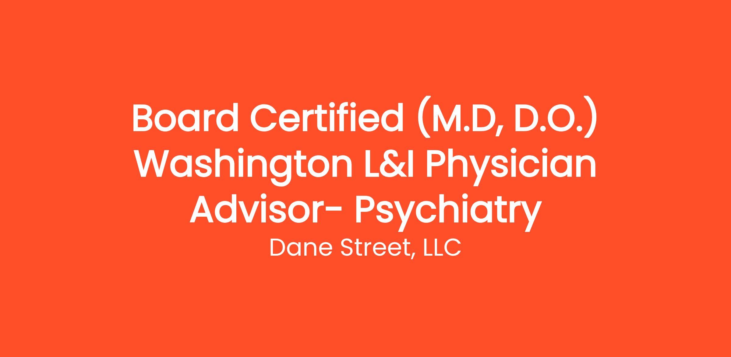 Dane Street, a nationally recognized Independent Review Organization and provider of Independent Medical Exams (IMEs), is expanding our physician panel and currently seeking Washington-licensed Physician Advisors to support L&I Independent Medical Exams. This role requires reports using the AMA Guides to Fifth Edition, Sixth Edition, optional, and the Medical Examiner’s Handbook published by the state of Washington.