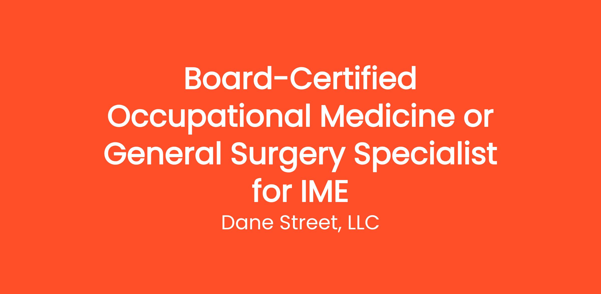 Board-Certified Occupational Medicine or General Surgery Specialist for IME