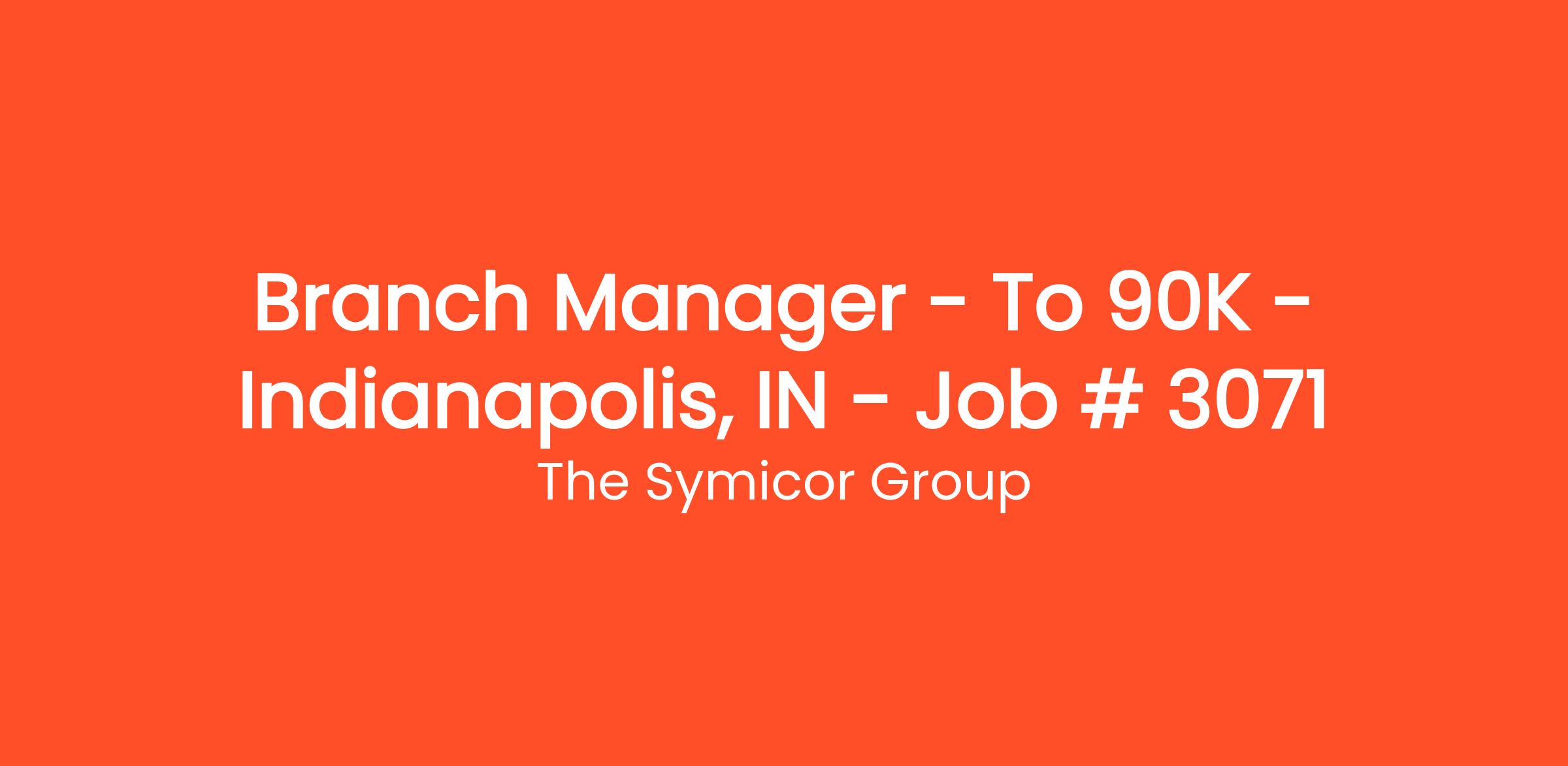 Our bank client is seeking to fill a Branch Manager role in the Indianapolis, IN area. The successful candidate will be maximizing branch growth, revenues, and client experience, and ensuring compliance with all banking laws and regulations.