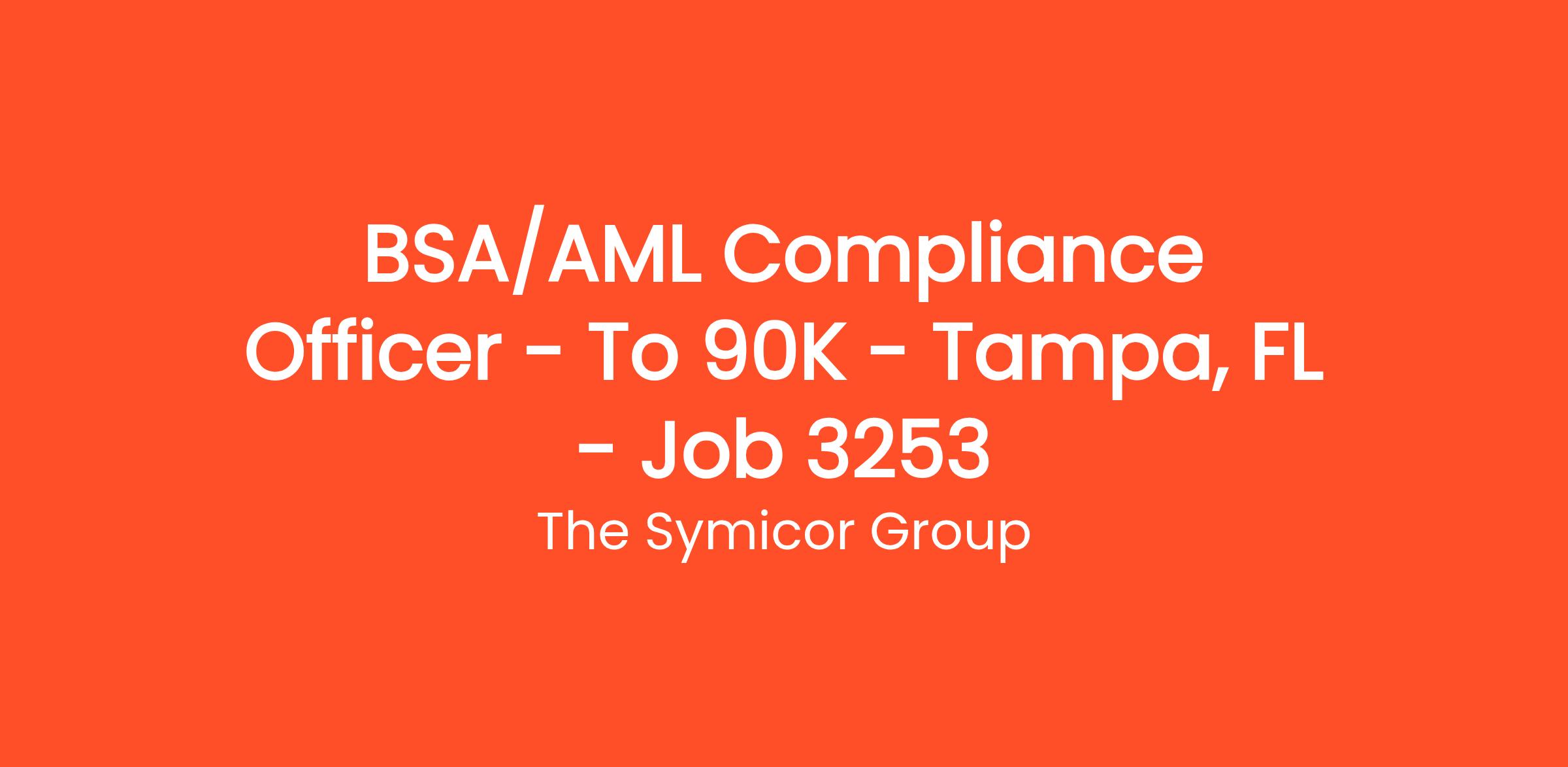 BSA/AML Compliance Officer – To $90K – Tampa, FL – Job # 3253