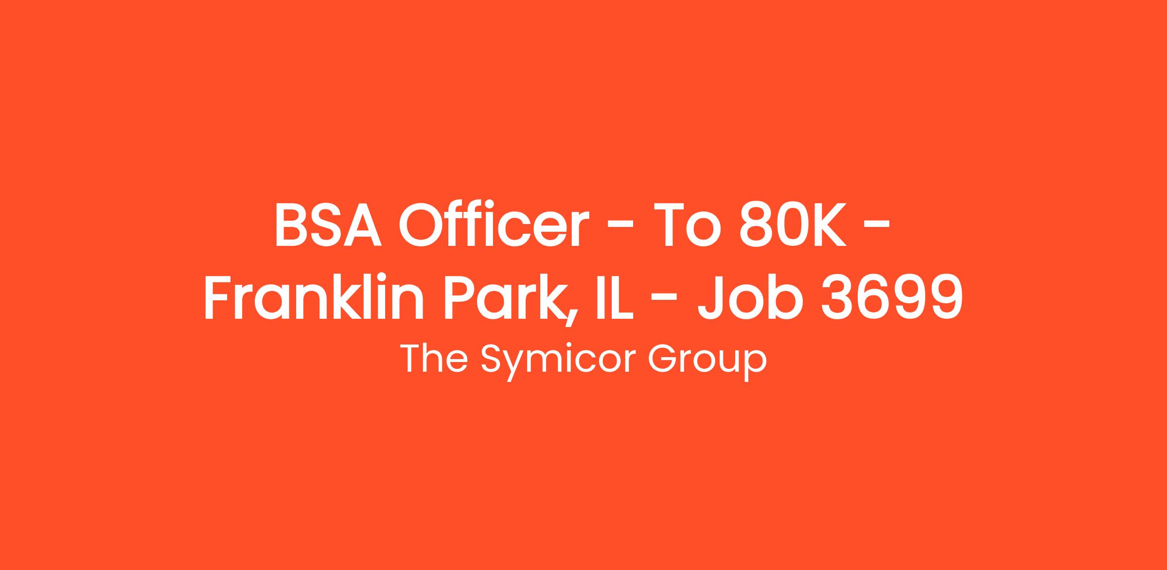 BSA Officer – To $80K – Franklin Park, IL – Job # 3699