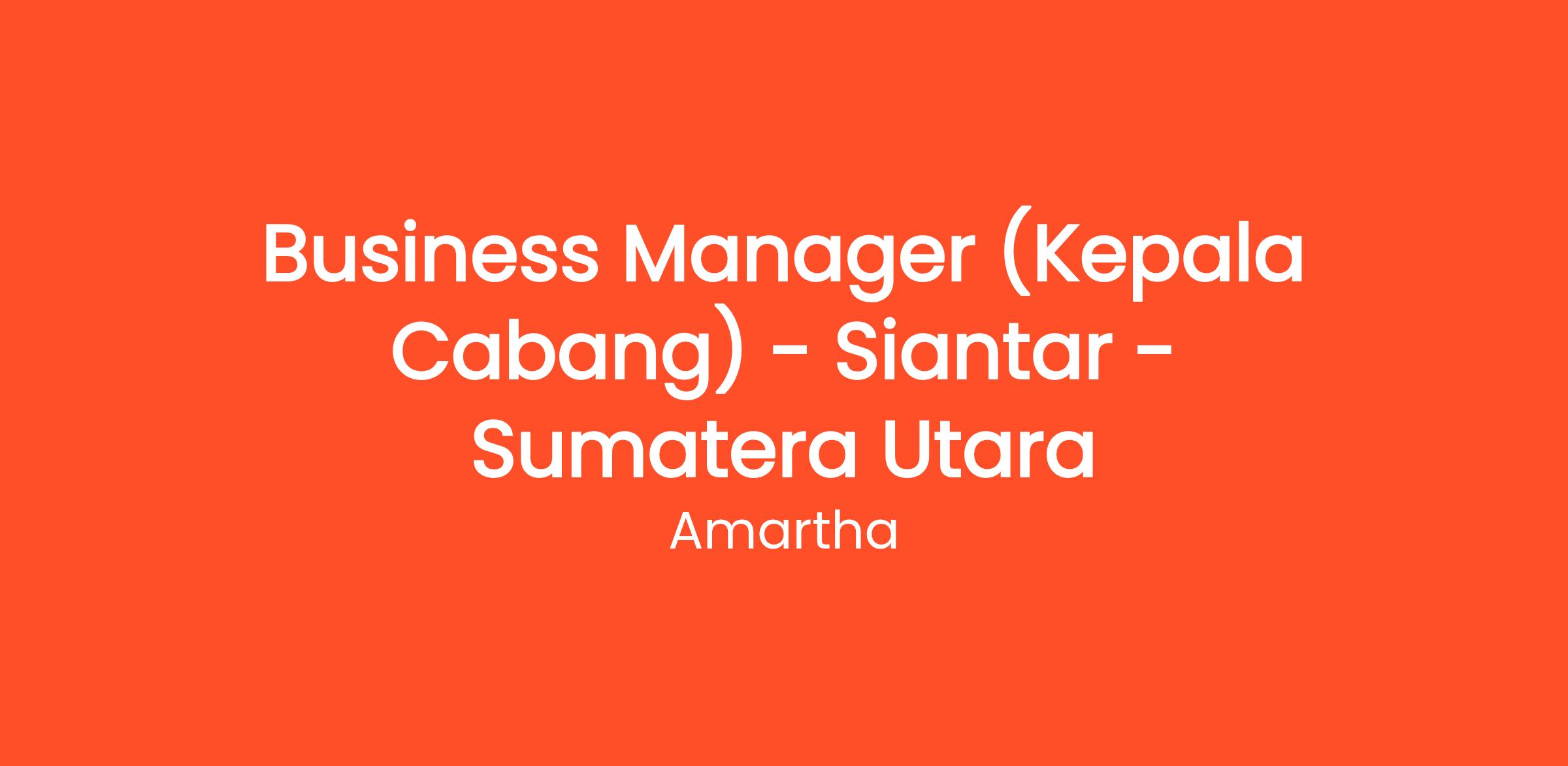 Business Manager (Kepala Cabang) - Siantar - Sumatera Utara