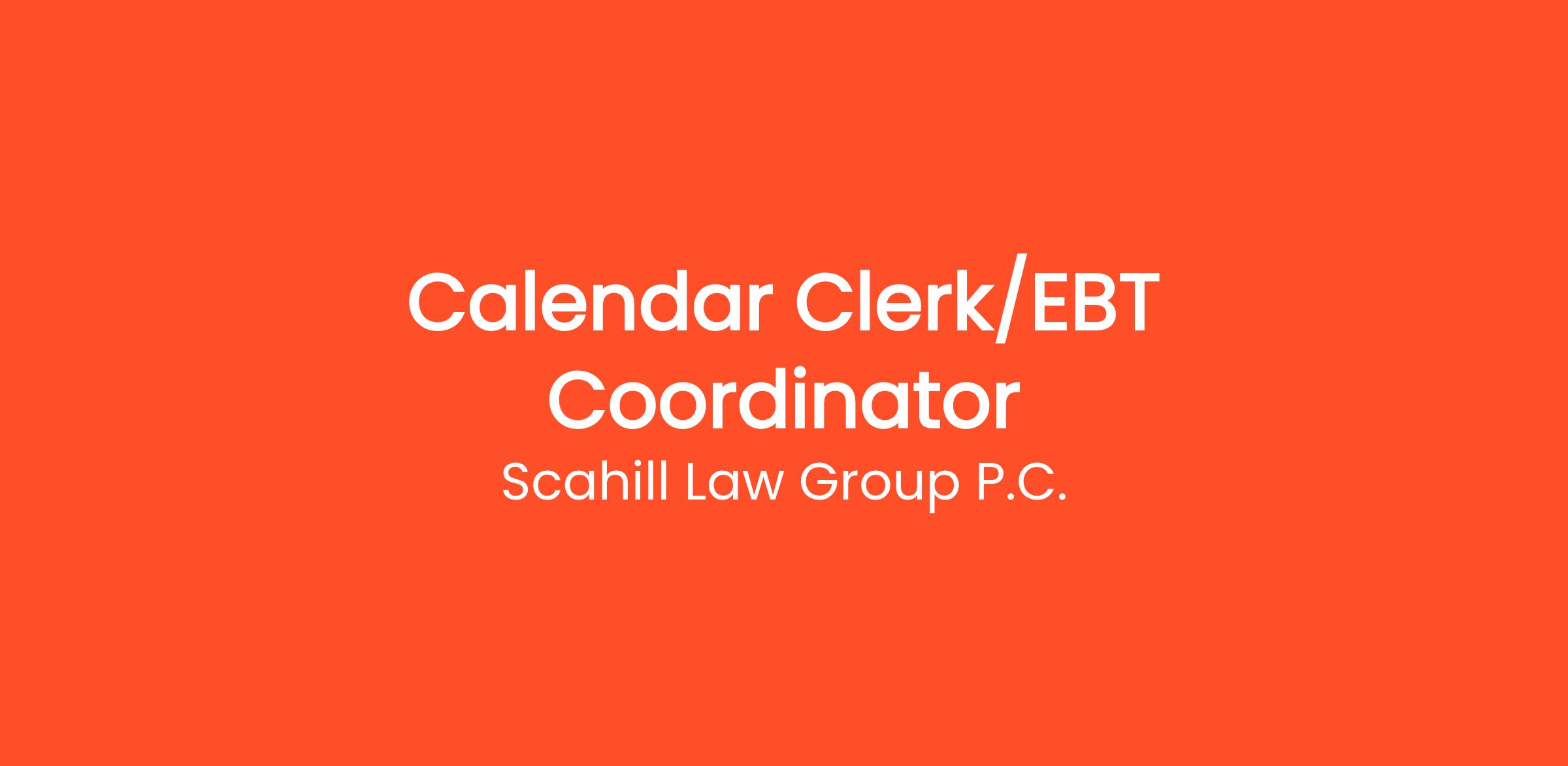A calendar clerk at Scahill Law Group, PC, is part of a team that are dedicated professional’s that can handle a high-volume calendar. Schedule daily calendars for court appearances of attorneys and perform other administrative duties related to the Calendar Department.