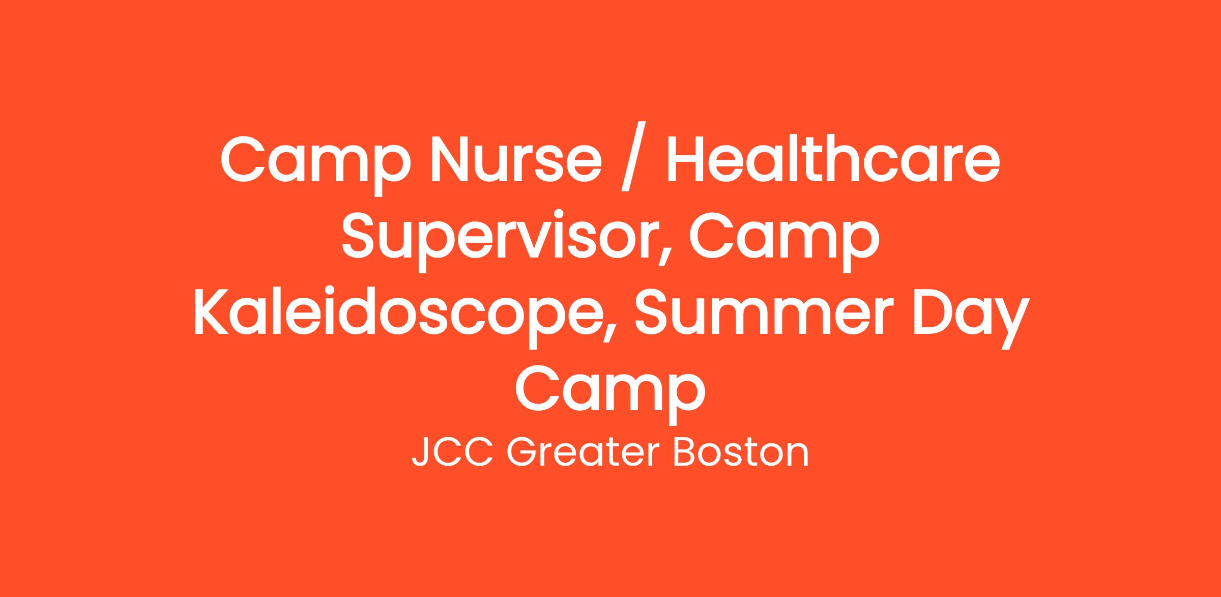 Laughter. Fun. Being a role model and making a difference. Camp Kaleidoscope, the JCC summer day camp in Newton, draws creative campers interested in the arts, science and the outdoors. Camp Counselors and activity specialists guide campers in drama, art, science, sports, swimming and much more as they develop and build self-confidence. The energy of the camp is lively, playful and warm, as both campers and staff develop lifelong friendships. Our Camp Nurse / Healthcare Supervisor provides hands-on care and manages the distribution of medications and camper care throughout the day.