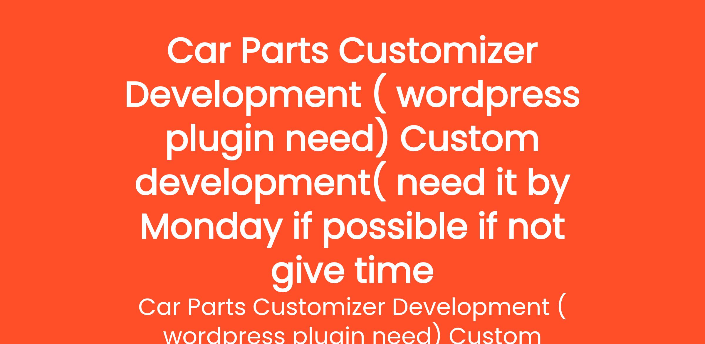 Project Requirement – Custom Car Parts Customizer Video is in attachment please find it .. Also I need expert person only and only Indian We need a custom car parts customizer similar to the reference shown in the attached video (please see the attached video carefully)... (Budget: ₹600 - ₹12000 INR, Jobs: JavaScript, jQuery, MySQL, PHP, Software Development, Web Design, Web Development, WooCommerce, WordPress, WordPress Plugin)