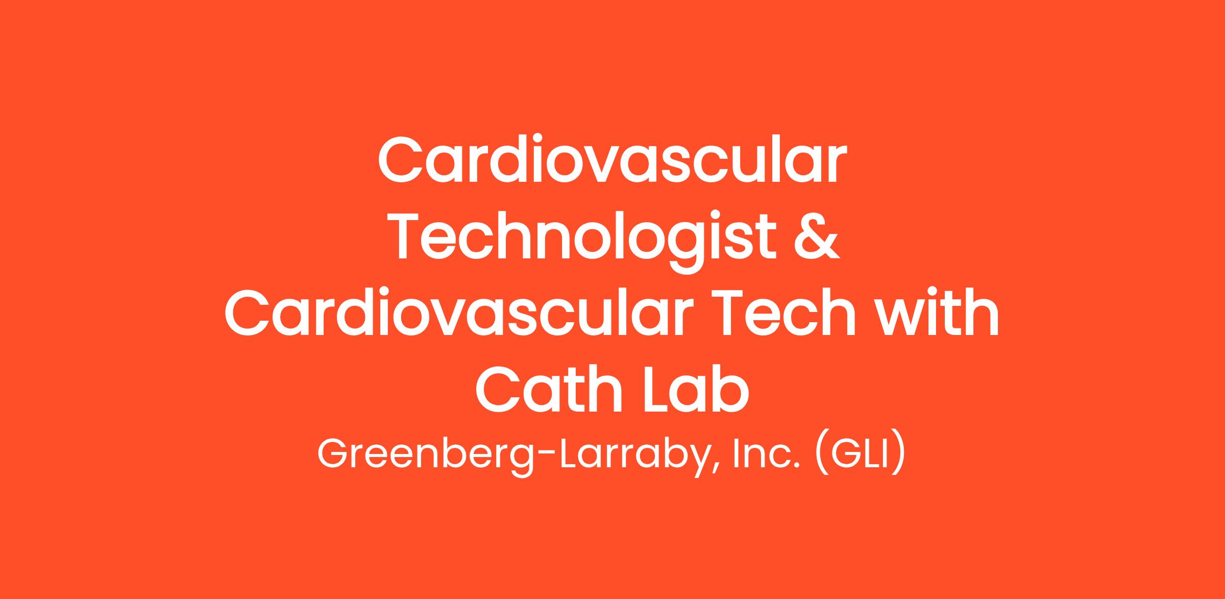 Greenberg-Larraby, Inc. (GLI) is seeking a skilled Cardiovascular Technologist for our Cath Lab to join our dynamic team at a well-known facility in San Diego! This role is instrumental in providing exceptional care to patients undergoing various cardiac procedures.