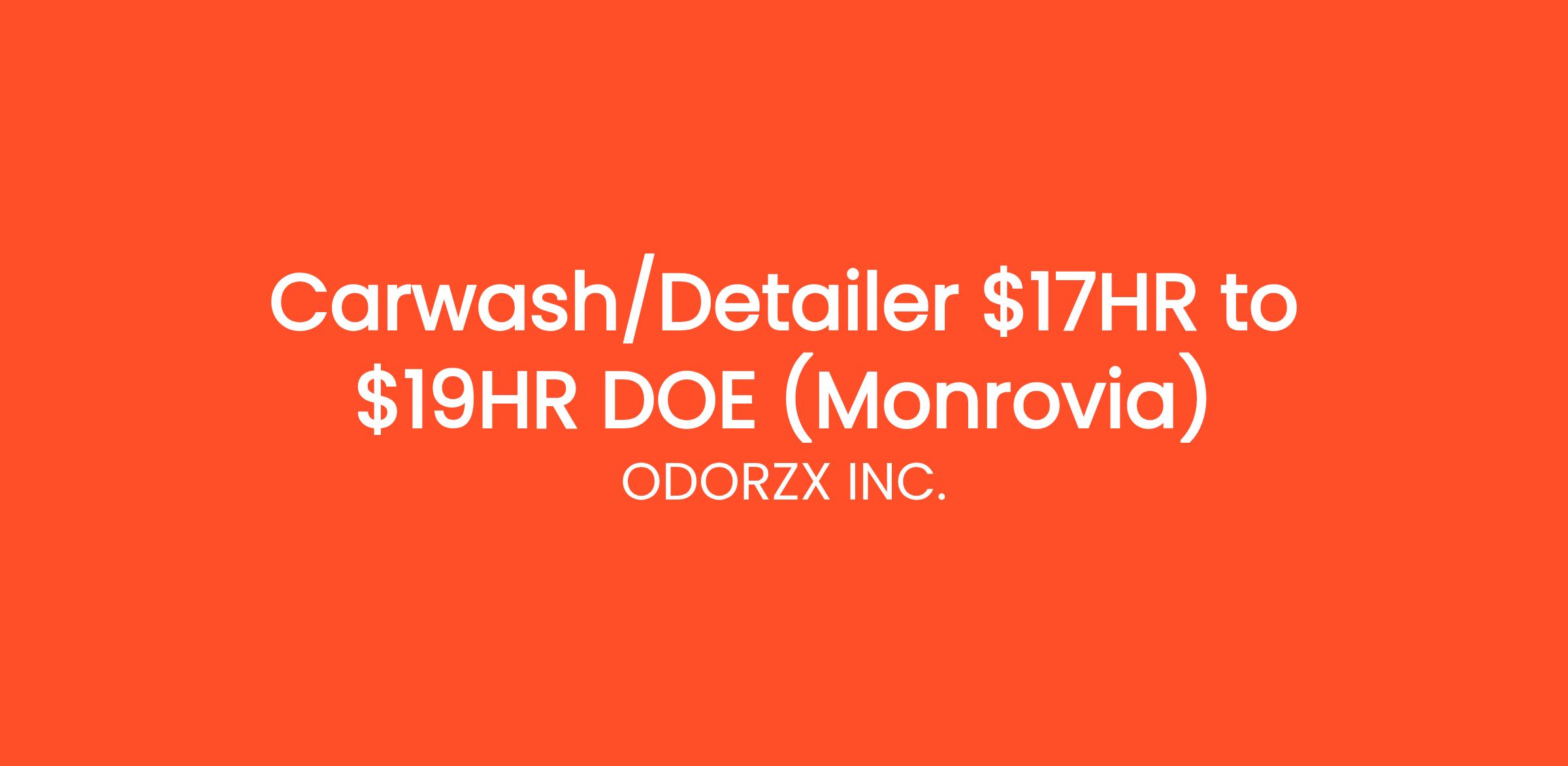 Carwash/Detailer $17HR to $19HR DOE (Monrovia)