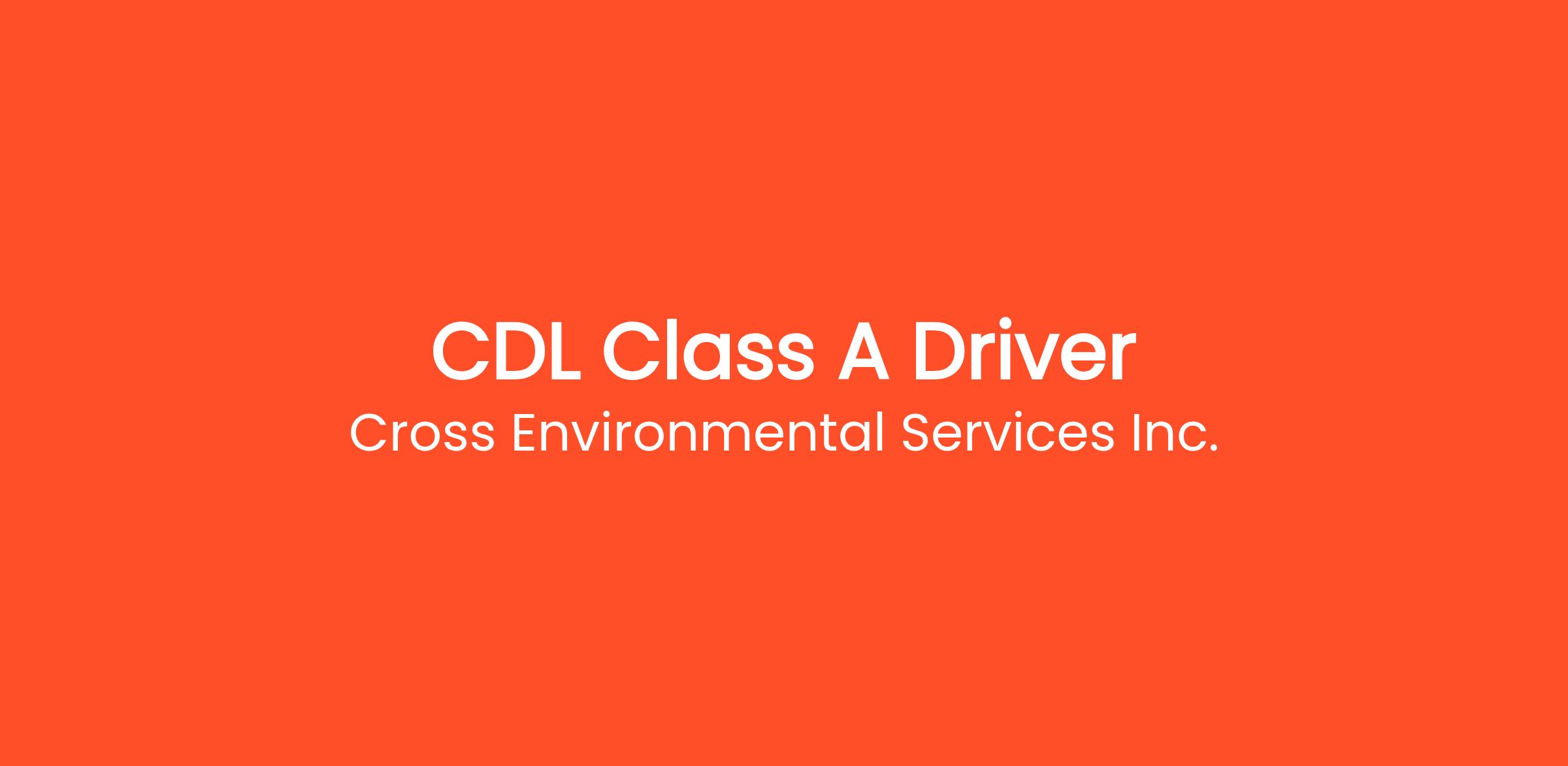 Cross Environmental Services, Inc. is seeking Class A Driver.