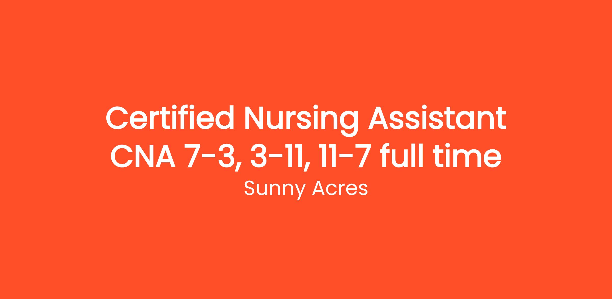 Each day will bring something exciting and new; you will be part of the Sunny Acres team and treated like family. You will play a valuable role as a front-line team member, providing direct care to our residents and interacting with family members and other interdisciplinary team members.
