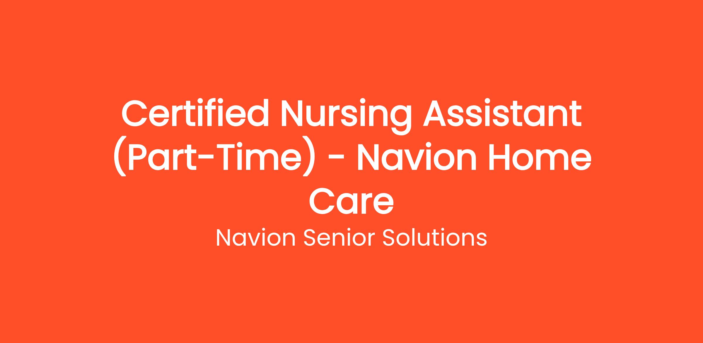 Navion Home Care is seeking Certified Nursing Assistants (CNA) who can provide outstanding resident care and physical support on a daily basis in our residents' home. A CNA will provide compassionate care and assistance with activities of daily living. The ideal candidate comes with a big heart as they support and respond to the residents' emotional and physical needs.