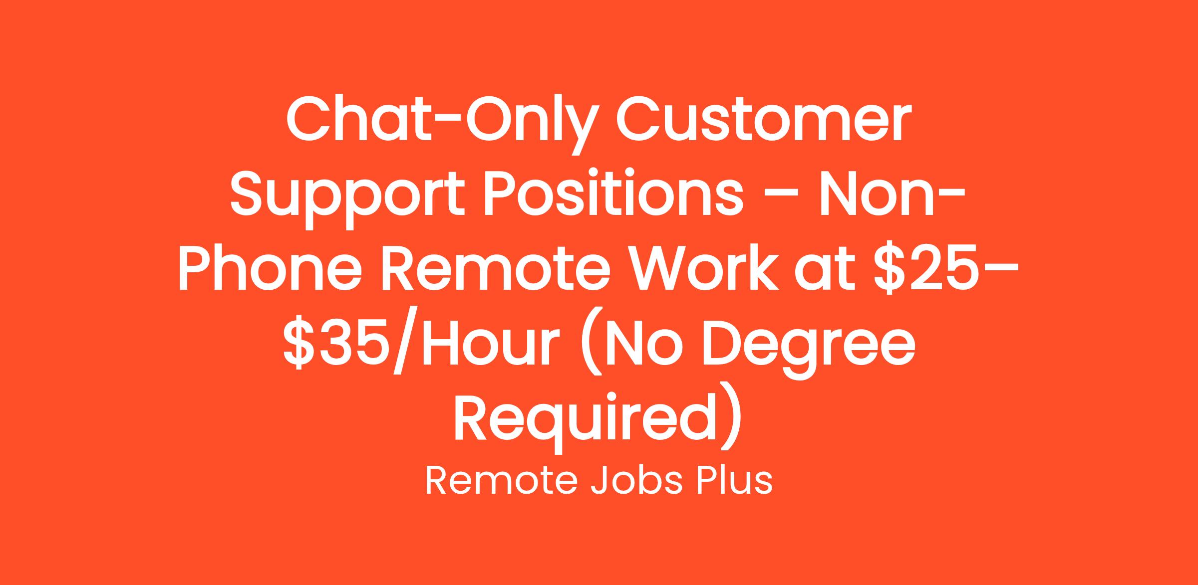 Chat-Only Customer Support Positions – Non-Phone Remote Work at $25–$35/Hour (No Degree Required)