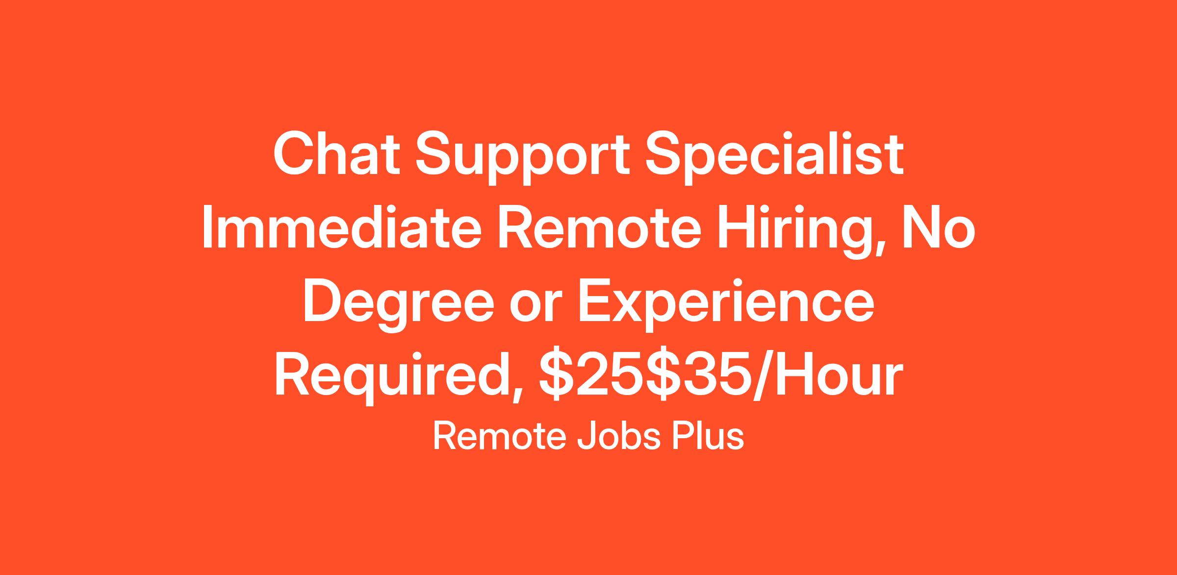Chat Support Specialist Immediate Remote Hiring, No Degree or Experience Required, $25$35/Hour