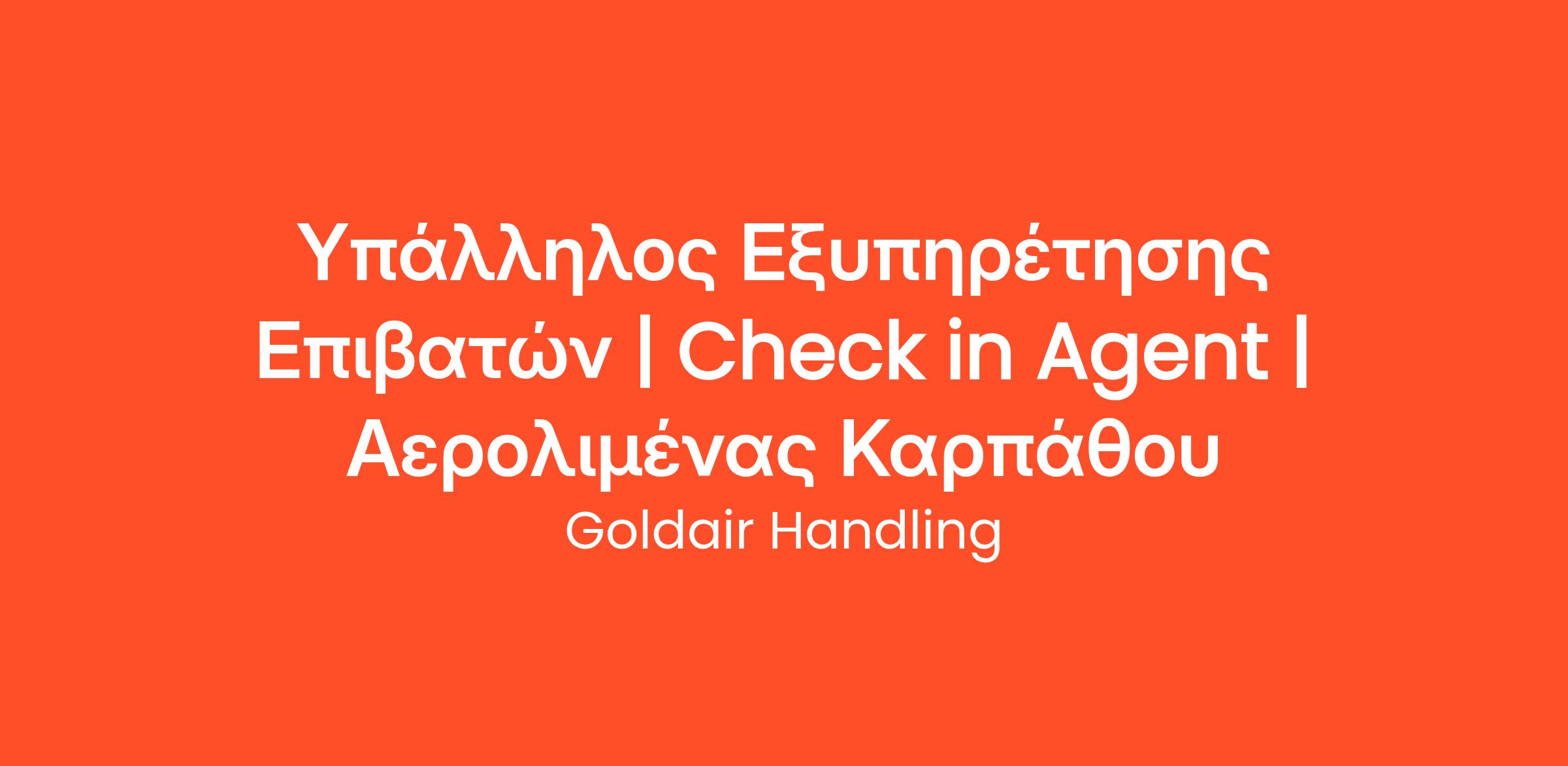 Η Goldair Handling, η μεγαλύτερη ελληνική εταιρεία επίγειας εξυπηρέτησης, με δραστηριότητα τόσο στην Ελλάδα όσο και το εξωτερικό, αναζητά Υπαλλήλους Εξυπηρέτησης Επιβατών | Check-in Agents για τον Αερολιμένα Καρπάθου.