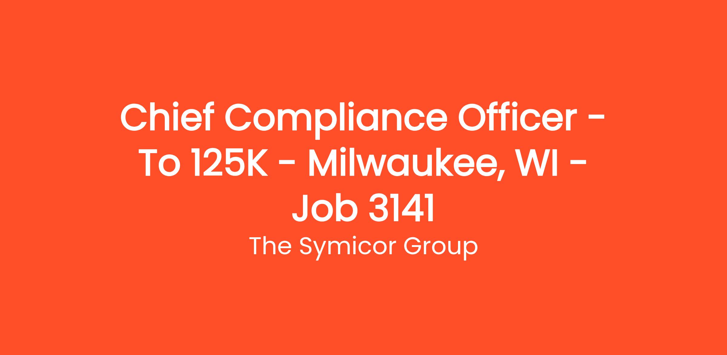 Chief Compliance Officer – To $125K – Milwaukee, WI – Job # 3141