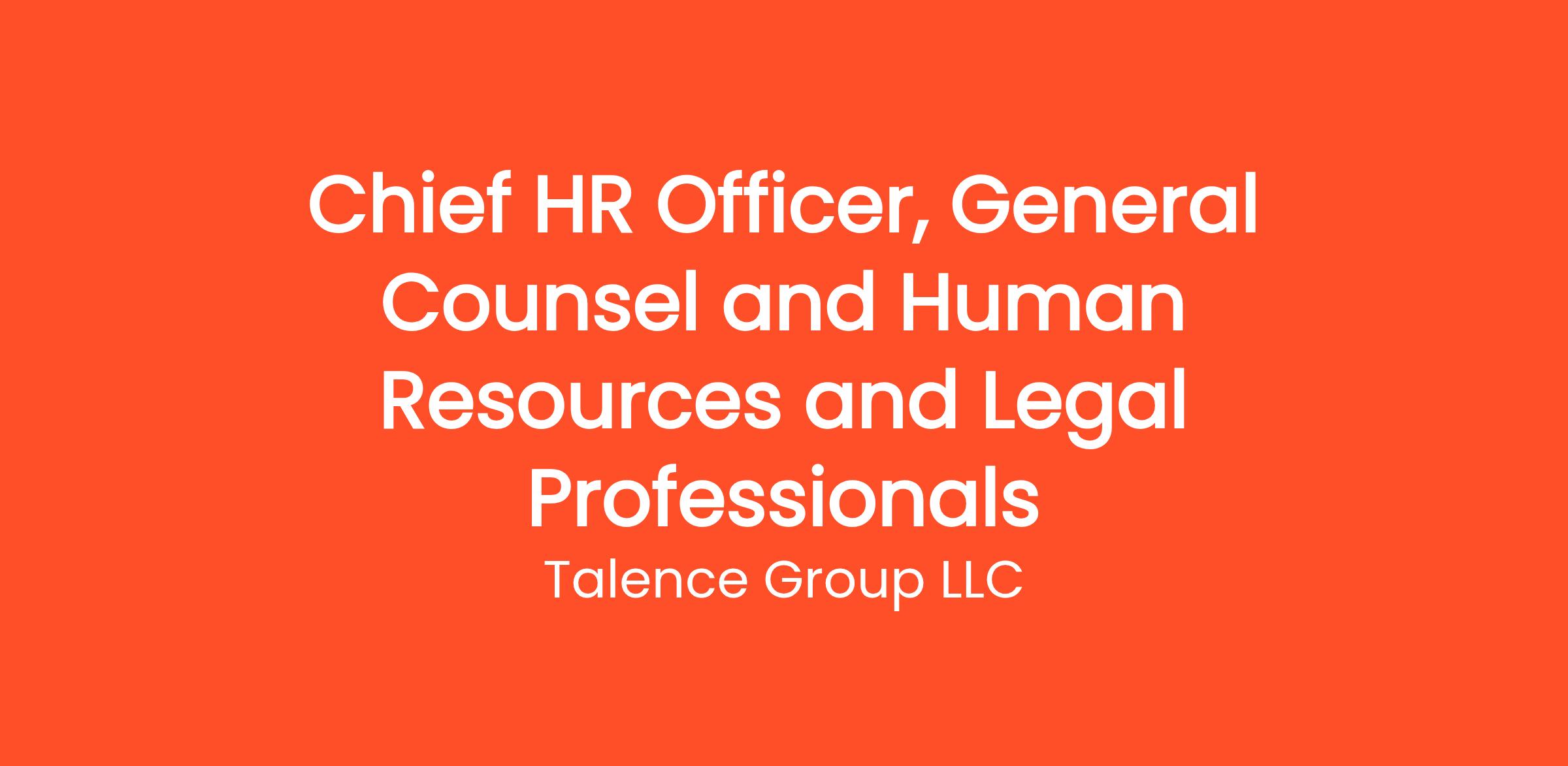 Chief HR Officer, General Counsel and Human Resources and Legal Professionals