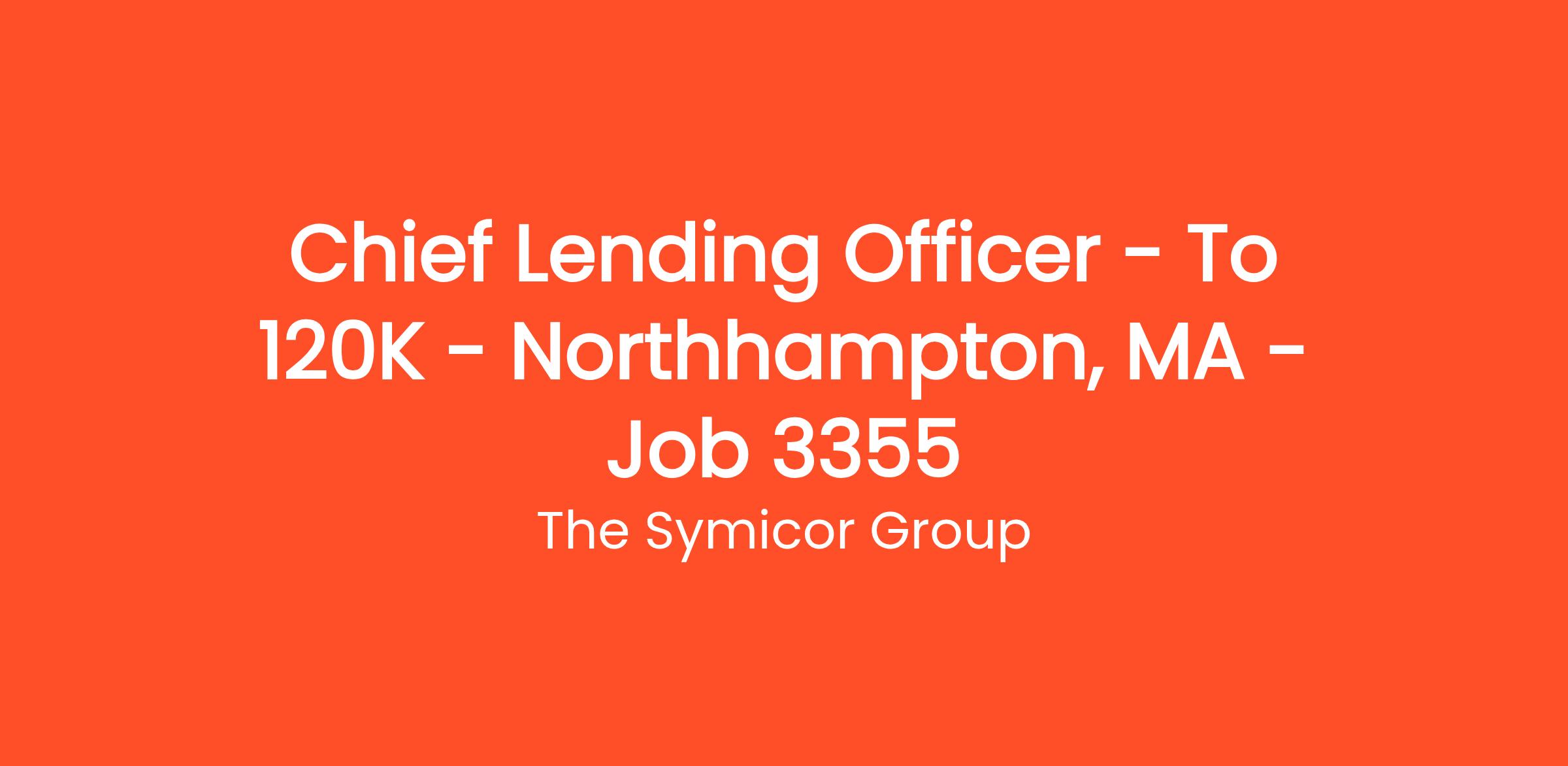 Chief Lending Officer – To $120K – Northhampton, MA – Job # 3355