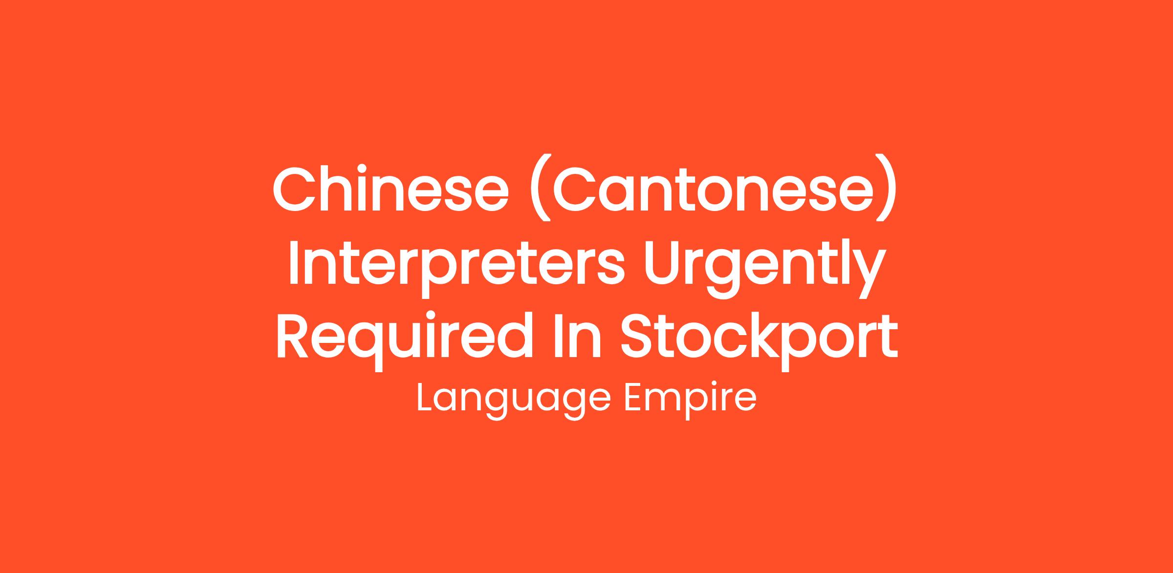 We are urgently recruiting for freelance Chinese (Cantonese) interpreters based in Stockport to work within various settings such as the NHS, Local Authorities, Police, Probation and other public and private organisations.