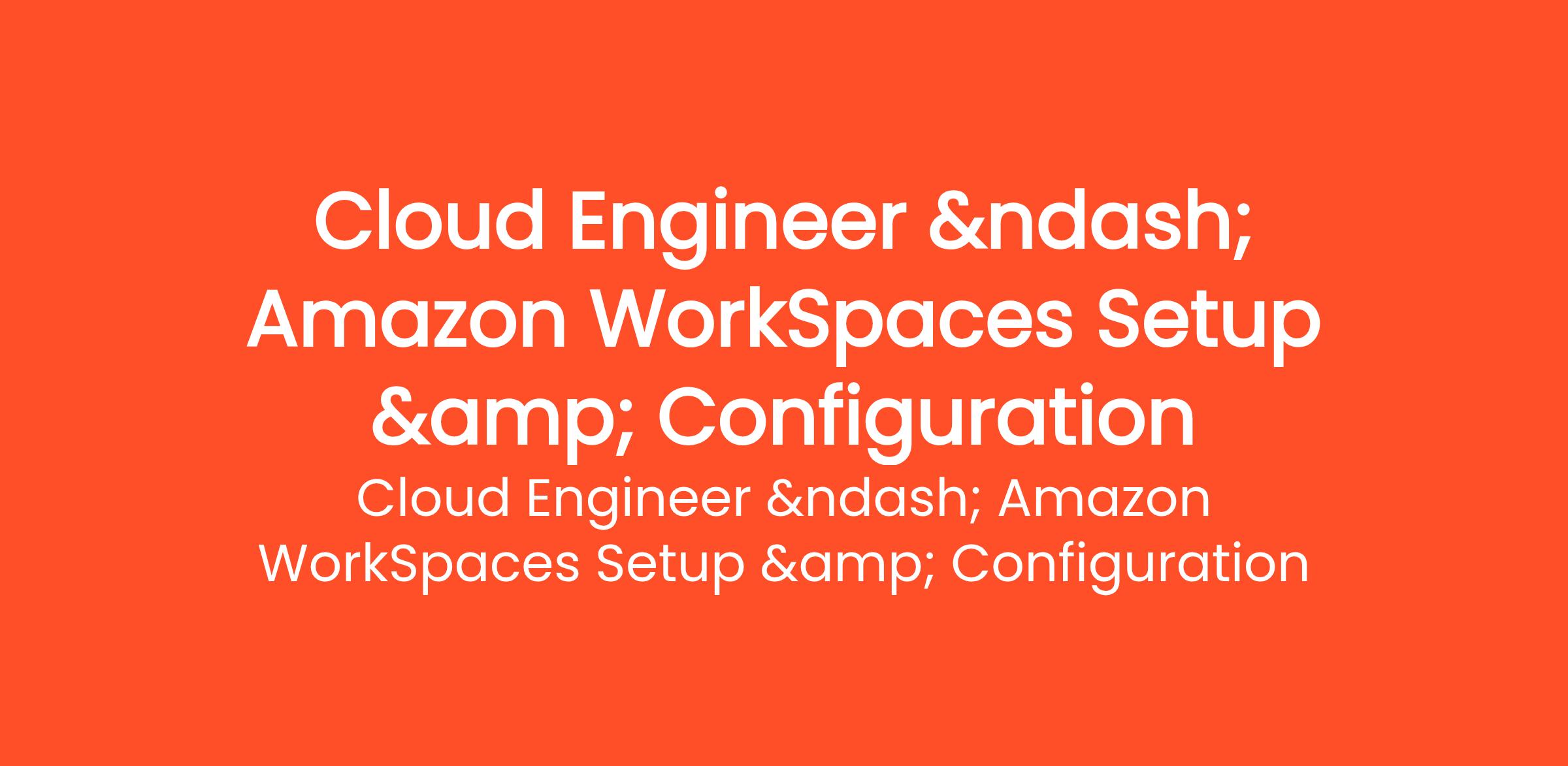 Cloud Engineer – Amazon WorkSpaces Setup & Configuration Summary What will be done? The purpose of this project is to deploy and configure a test environment featuring a single Amazon WorkSpaces Personal instance for Robin... (Budget: $250 - $750 USD, Jobs: Amazon Web Services, Cloud Computing, Cloud Security, Documentation)