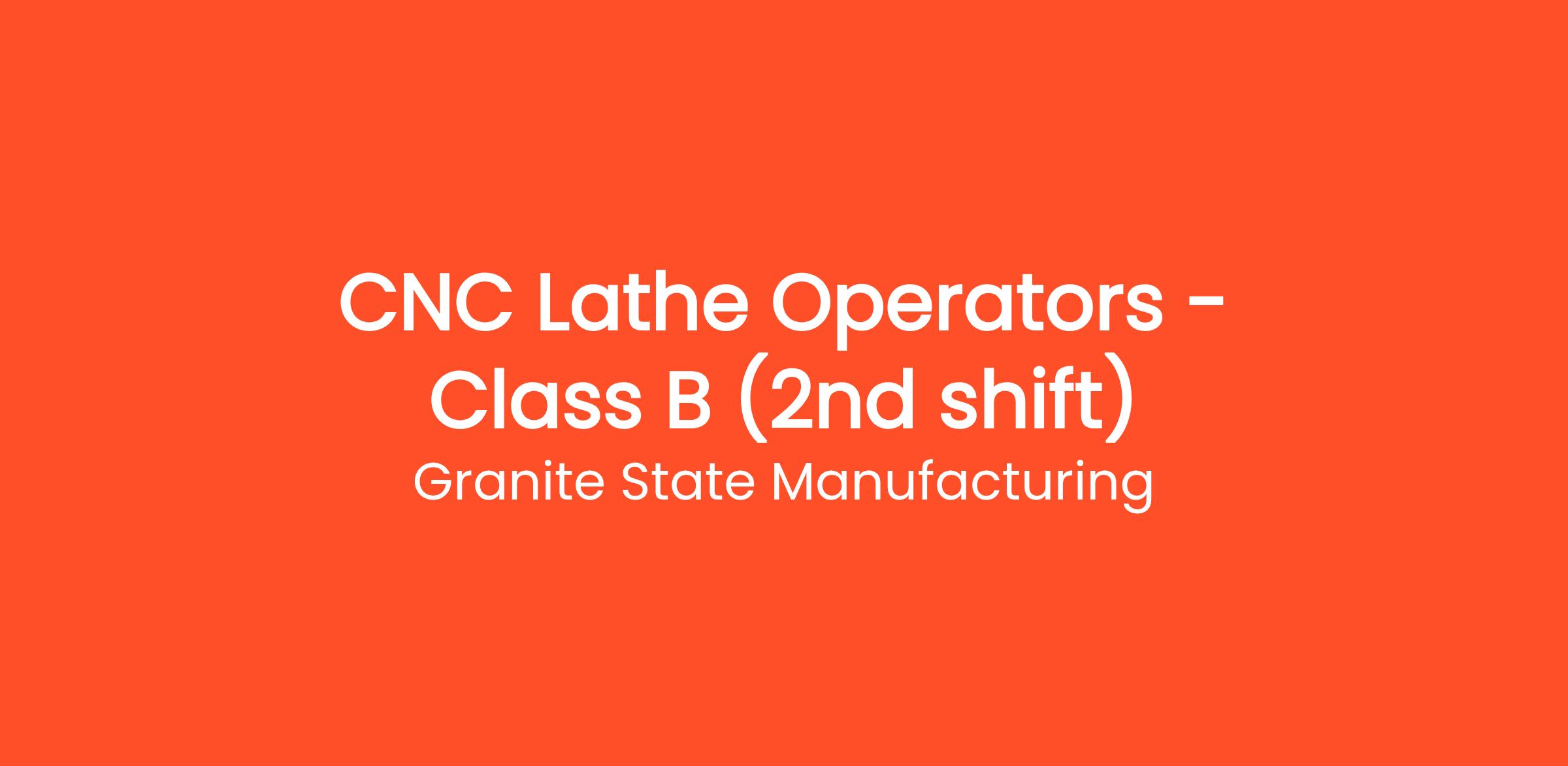Granite State Manufacturing (GSM) is seeking Class B CNC Lathe Operators to join our precision machining team on first shift.