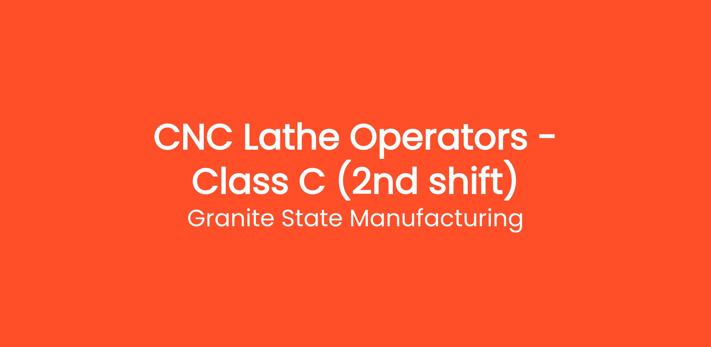 Granite State Manufacturing (GSM) is seeking motivated Class C CNC Lathe Operators to join our precision machining team on first shift.