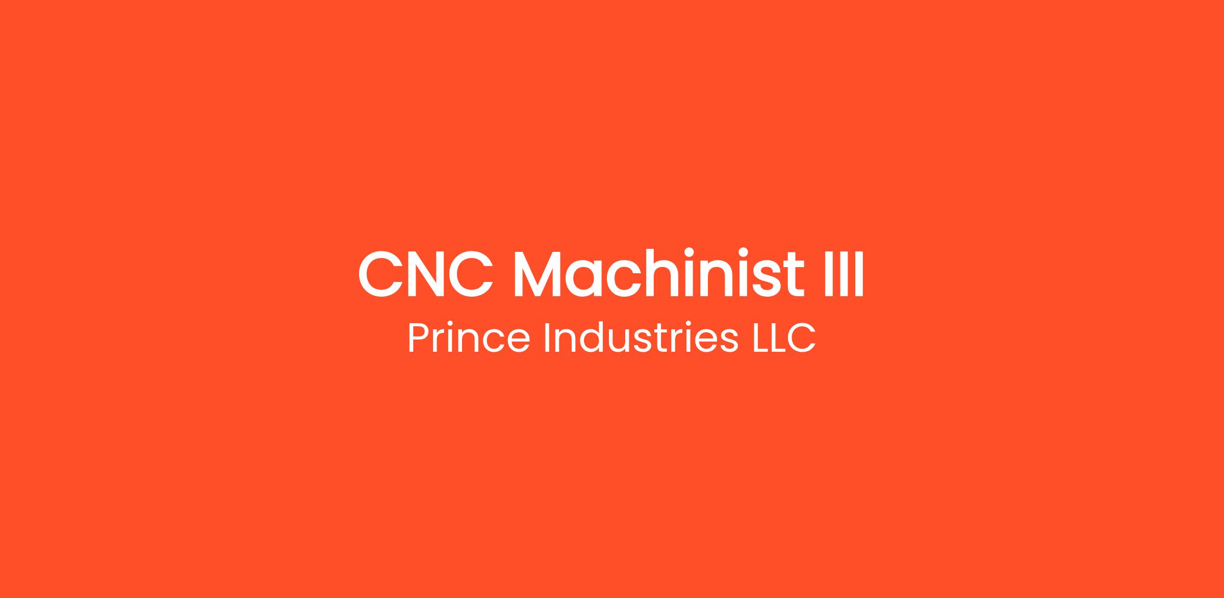 - 10+ years preferred experience and /or training, or an equivalent combination of education and experience with CNC Machining