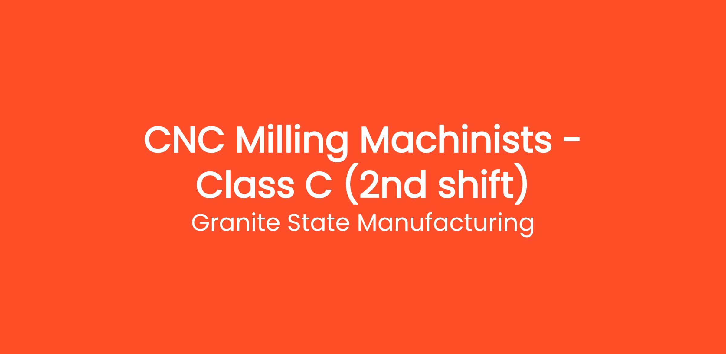 Granite State Manufacturing (GSM) is seeking motivated Class C CNC Milling Machinists to join our precision manufacturing team on first shift.